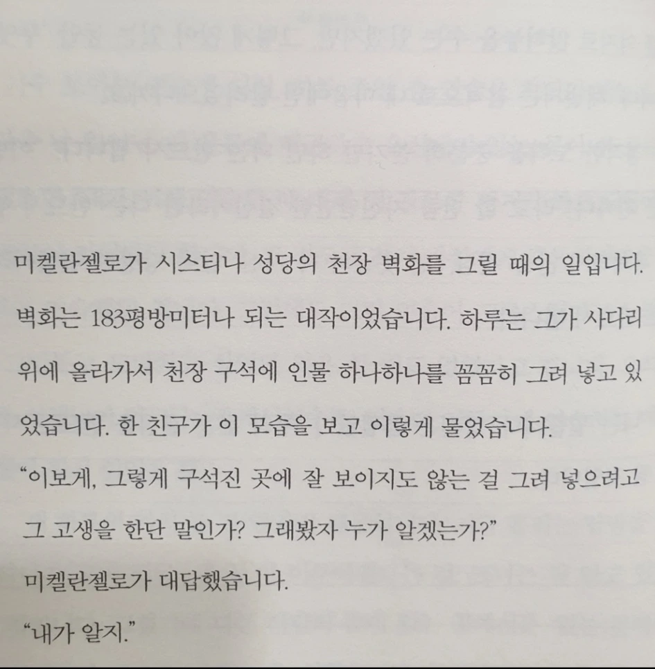 물론 사람들의 평판이나 눈치도 조금은 생각을 했을 것이나 본인의 잣대가 매우 높았음을 알 수 있습니다. 이는 꾸준한 자기절제와 노력이 동반하지 않고서는 불가능한 일입니다.