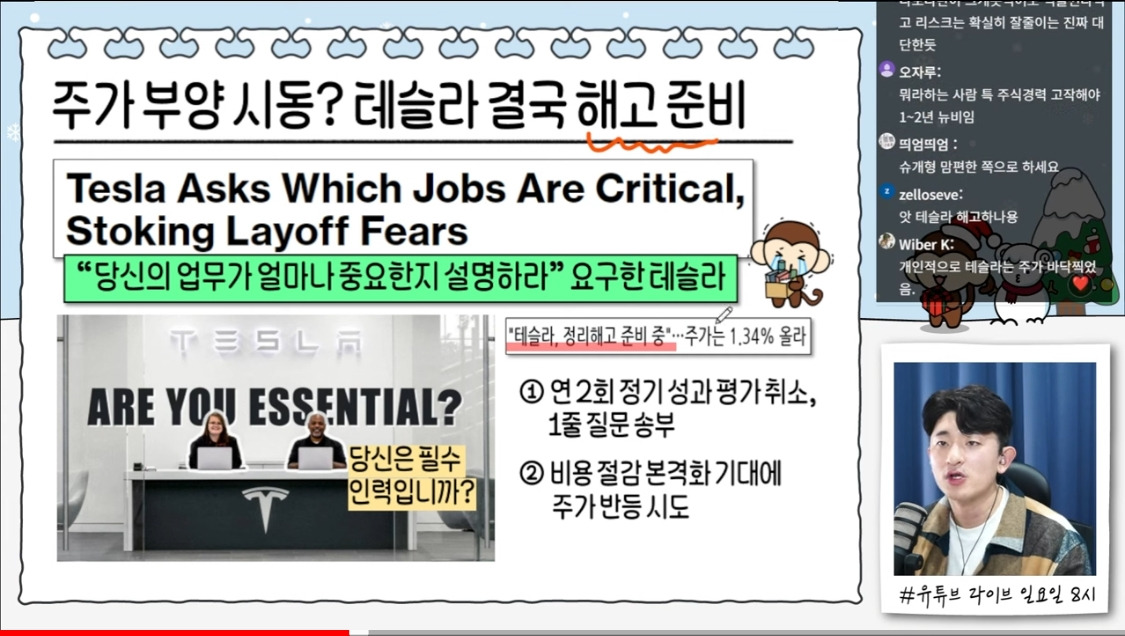 요즘 미국 빅테크/기술업체들이 대량해고를 진행했고 그 여파로 이익률이 좋은 성과가 나왔다. 투자자들은 당연히 테슬라에도 대량해고를 통한 마진율 개선을 바랄 것이고 결국 저성과자를 추출해 해고를 진행하는 모습을 보이고 있다.