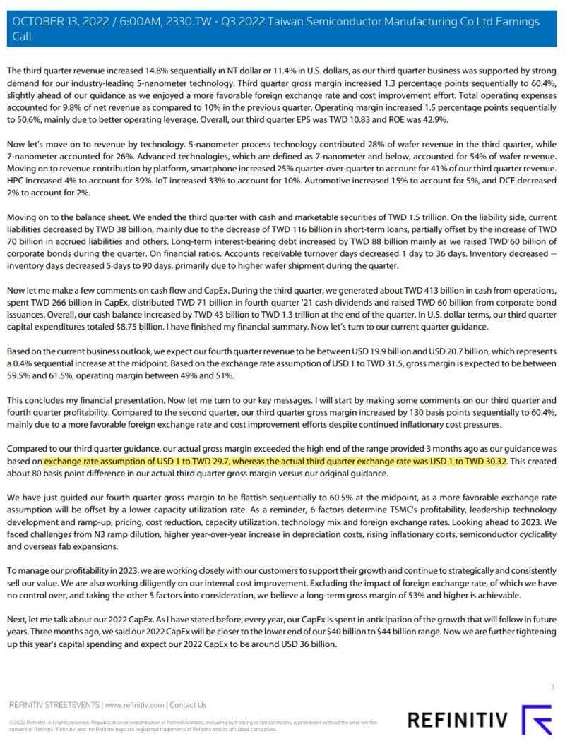 기본적인 정보는 확인했으니 이제 CEO와 경영진이 어떠한 가치관과 경영감각을 파악할 수 있는 TSMC 2023 3분기 IR 컨퍼런스 콜(어닝콜) 스크립트를 분석해보겠습니다.