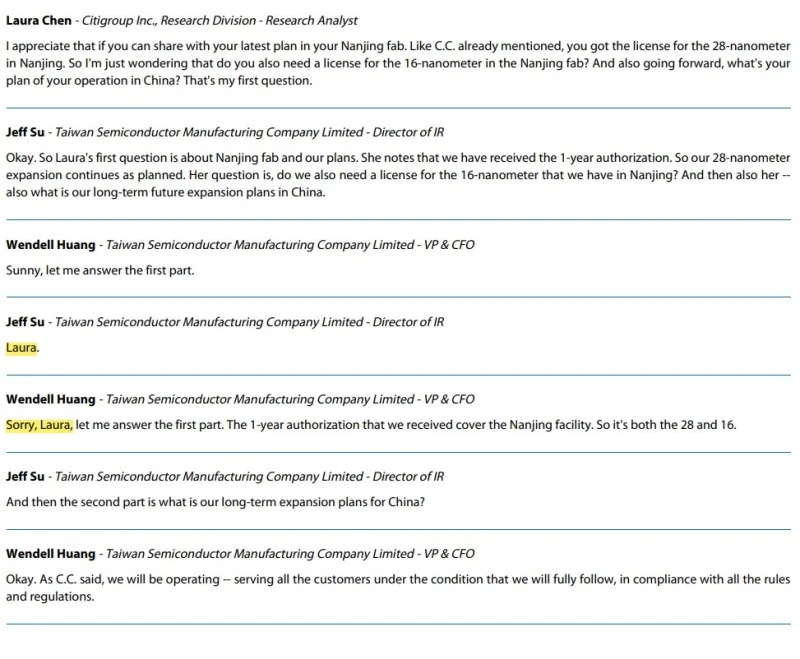 마지막은 시티그룹의 애널리스트 Laura chen이 질문을 했는데 CFO Wendell Huang이