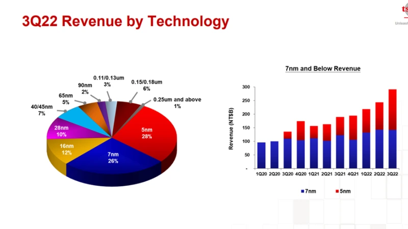 2022.3분기 TSMC 수익은 5nm: 28%, 7nm: 26%, 16mm: 12%, 28mm: 10%를 기록했네요.
