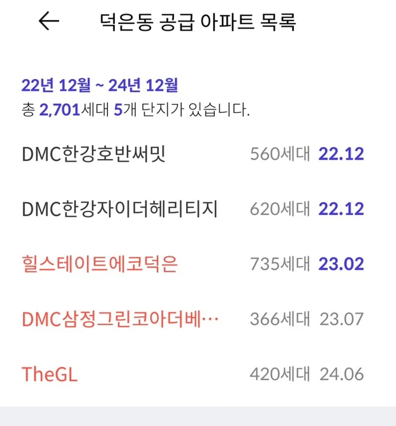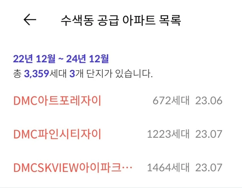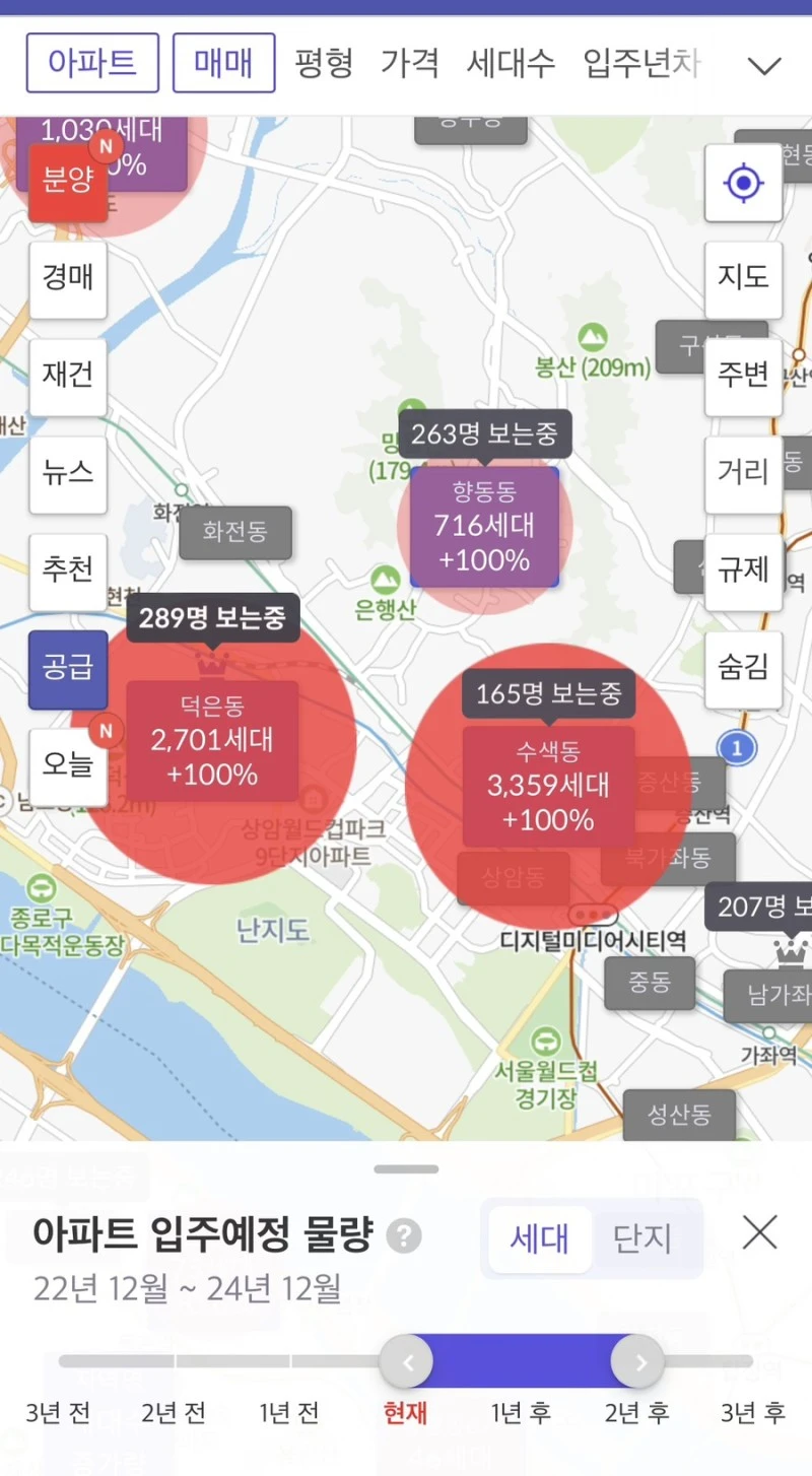 22.12월 1,200세대, 23.6-7월에 3,700세대입니다. 특히 내년 6월과 7월 수색동 공급 아파트 물량이