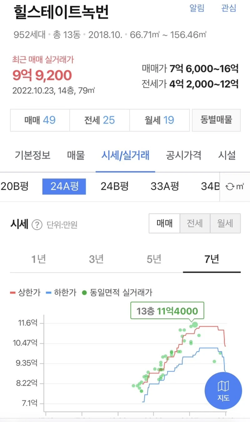 11.4억 최고점을 찍은 아파트를 40% 정도 싸게