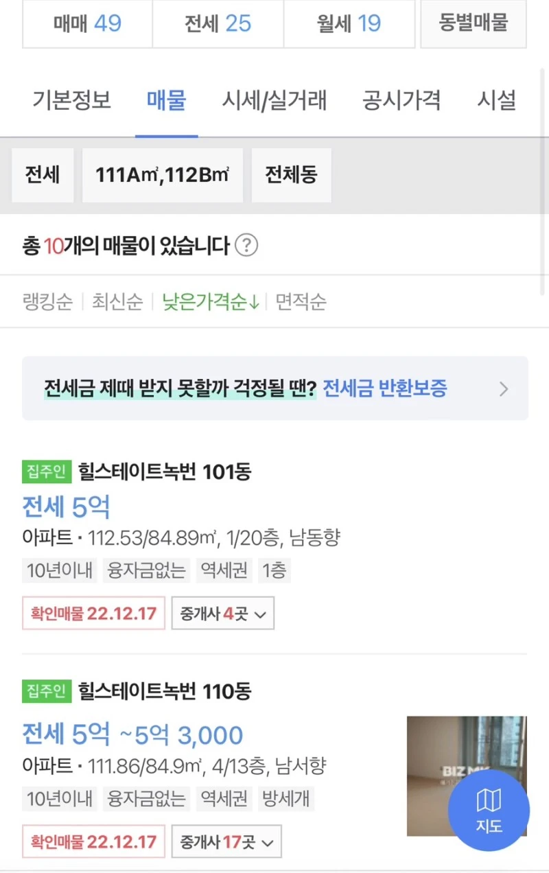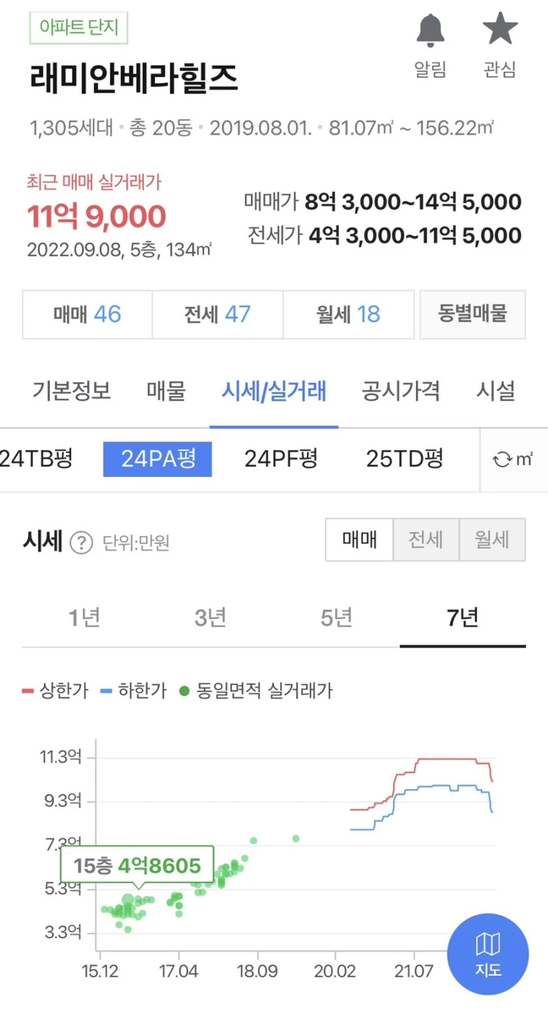 이전 24평형 시세는 4억 후반-5억 초반 정도였네요.
