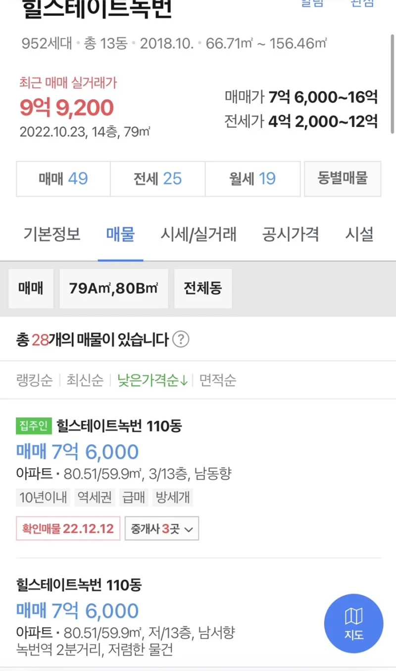 지금 네이버 매물이 7.6억이라면 워낙에 거래가 없고 금리가 높은 하락기이기에 입담좋게 얘기