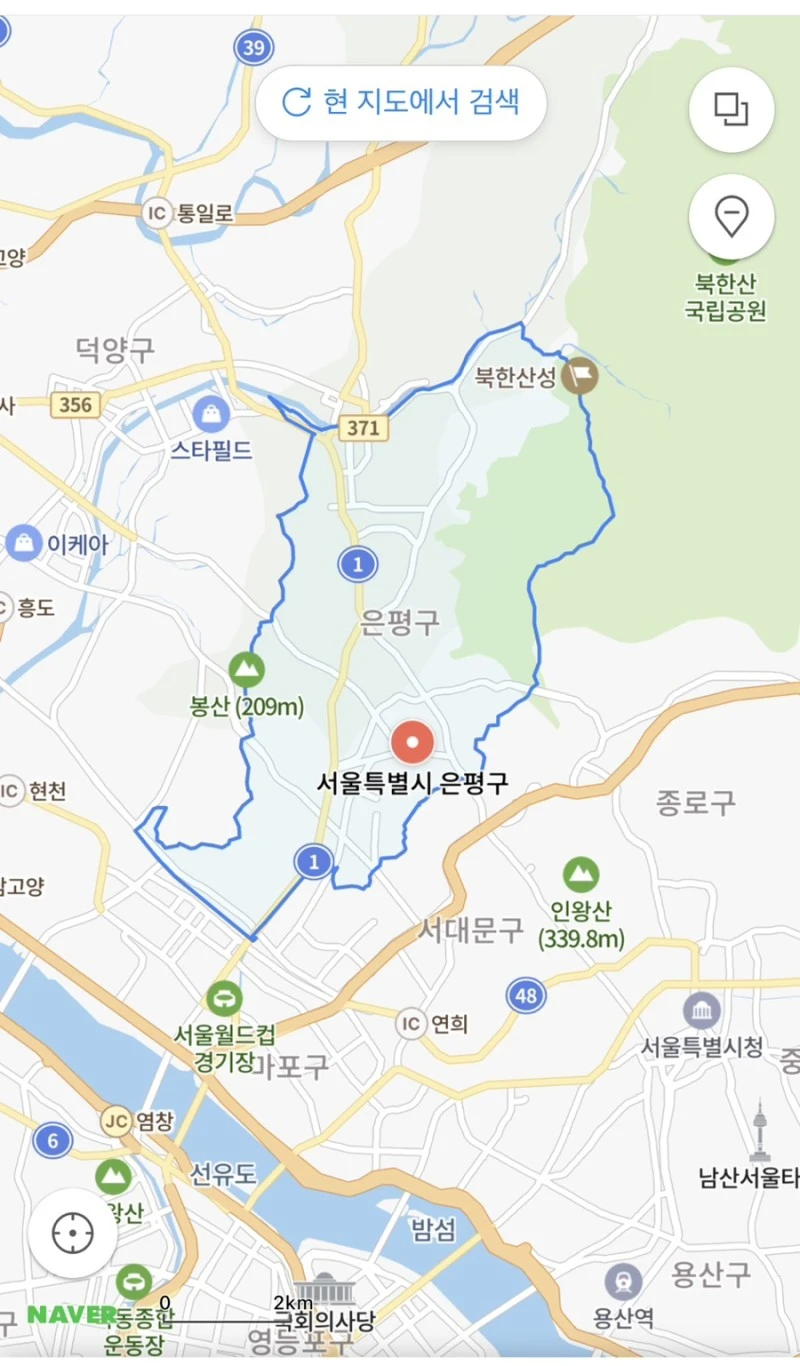 종로구, 북쪽으로는 북한산, 서쪽은 고양시의 덕양구와 접해있습니다. 서울에서 고양시 넘어가는 길목이라고 할 수 있습니다. 하지만 지하철 3호선과 6호선을 끼고있어 주요 업무지구까지 접근이 좋습니다.