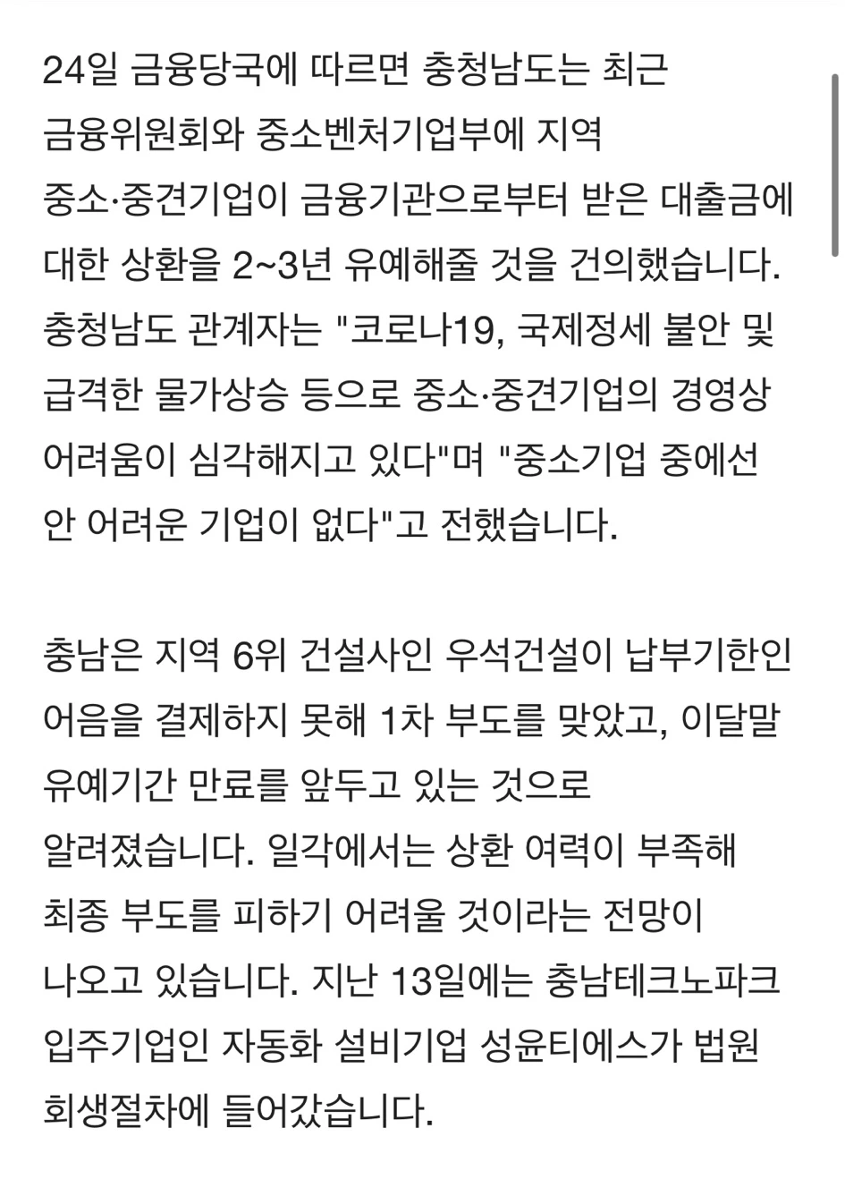 충남도청에서는 금융위/벤처기업부에 유예를 읍소한다는 이야기.