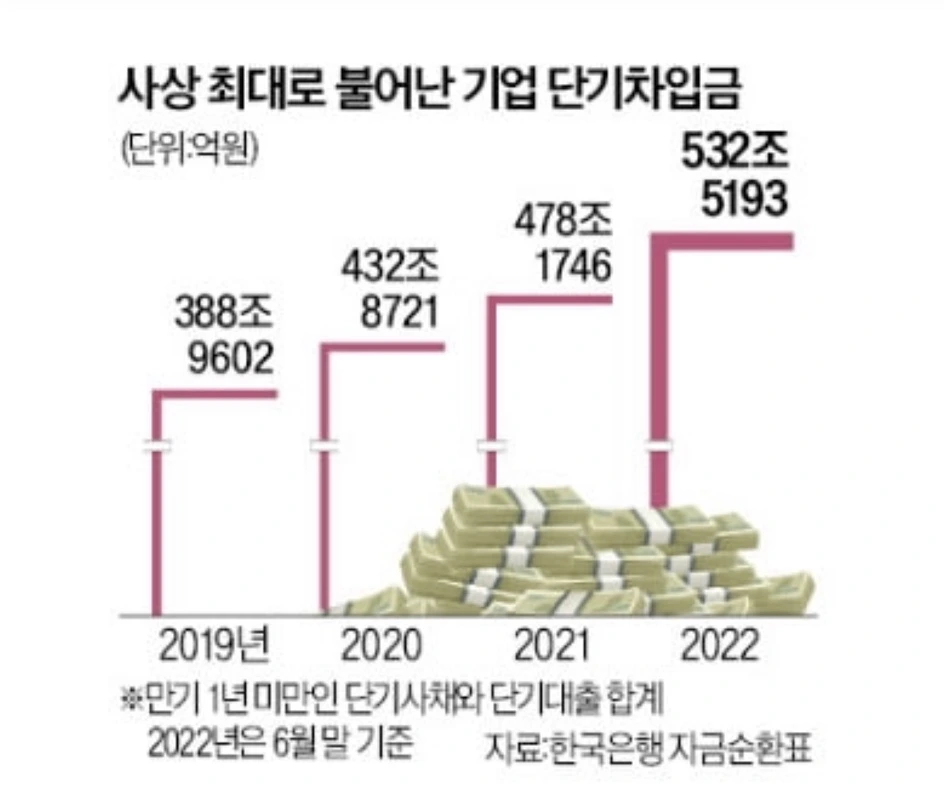 기업 단기대출이 3년 사이 40% 늘어났다는 이야기.