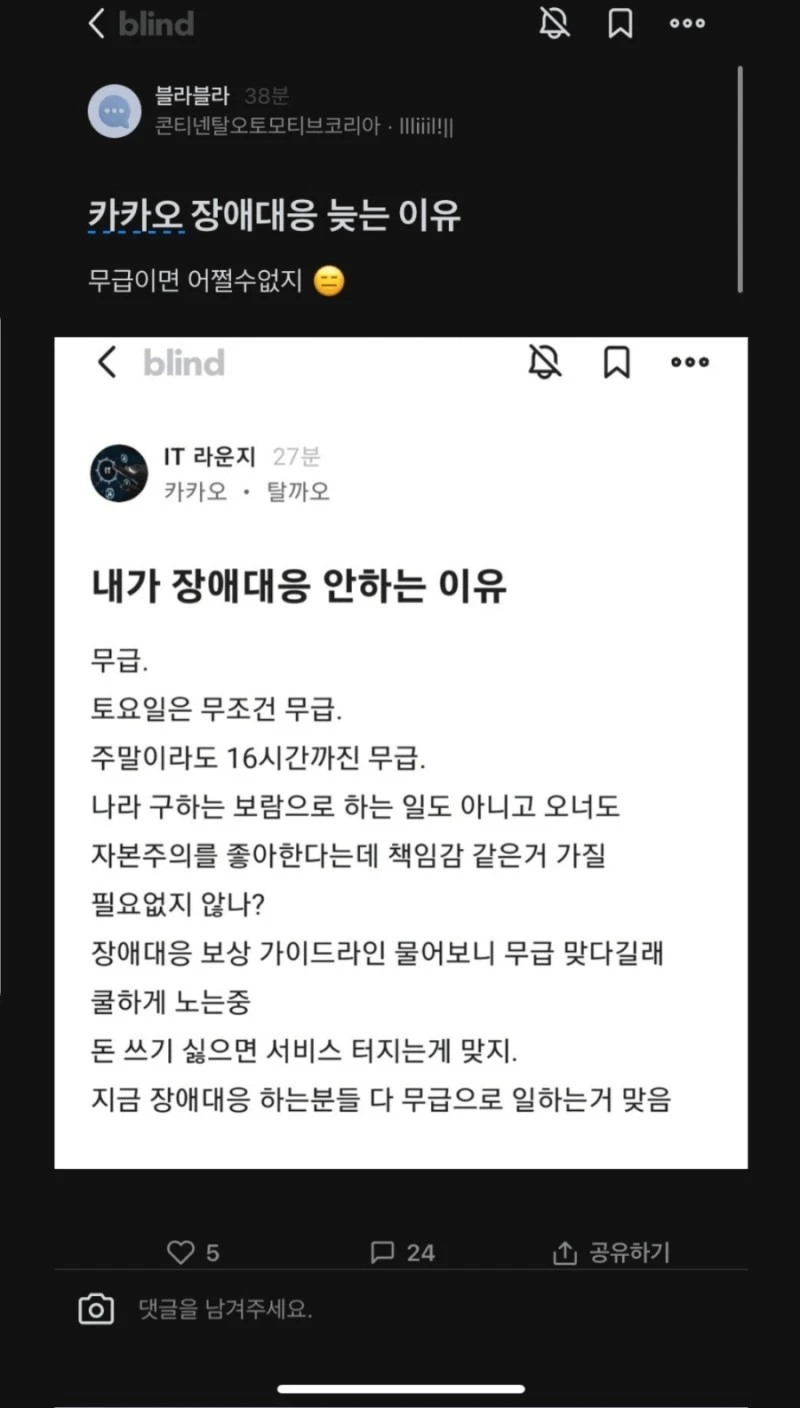 카카오 내부 인력구조에 문제가 드러나기도 했습니다.