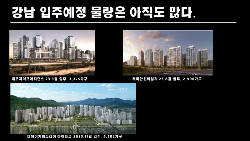더 큰 문제는 강남에.아직도.입주예정.물량이 많다. 개포자이프레지던스 3,375가구/레미안원베일리 2,990가구/디에이치퍼스티어 아이파크 6,702가구 총합 13,000가구가 올해 더 입주합니다. 18-220년까지 입주물량 6,400 가구를 합하면 최근 5년내에만 강남에 2만 가구가 입주했습니다. ㄷㄷ; 경제학의 기초죠. 공급이 늘면 가격은 떨어진다. 강남. 그중에서도 개포동은 당분간 하락할 가능성이 높고 주시하는 사람만이 기회를 잡겠네요.