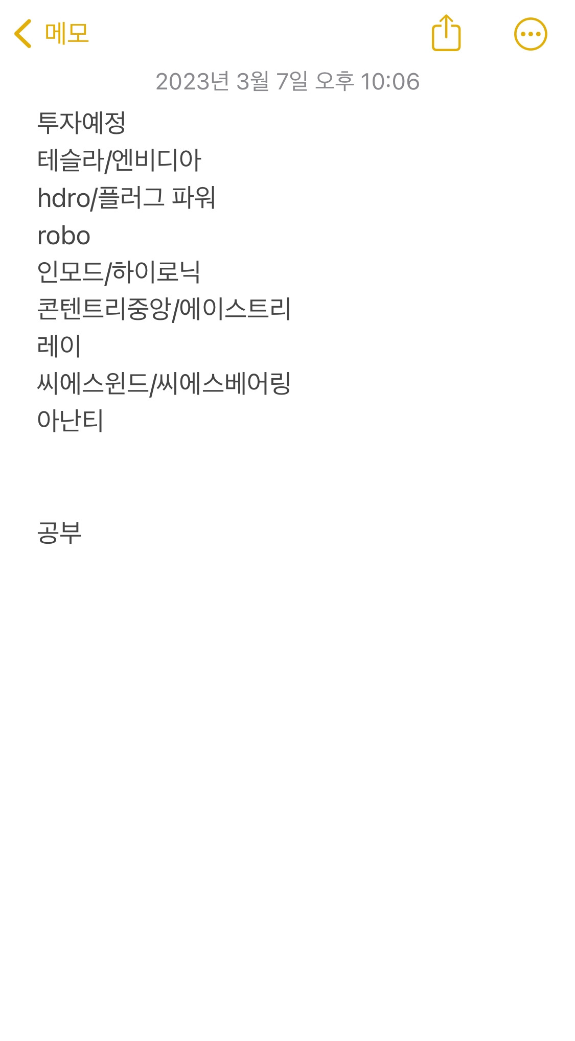 보다시피 메모장엔 그러한 투자예정 종목/etf들을 모아놓고 공부하고 싶은 종목이 떠오르면 그때그때 리서치하고 있음. 온라인/유튜브는 개인들이 주식공부하긴 너무 좋은 환경이다.