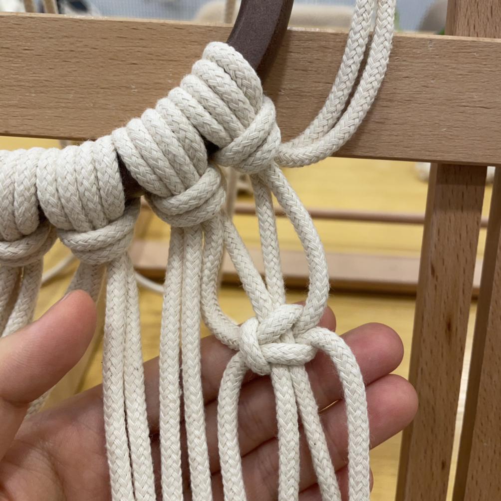 내 매듭은 처음 두어 줄이 다소 투박하다. 매듭이 손에 익지 않고 힘 조절에 노하우가 없는 게 그대로 담겨있다. 중반부에서 끝단으로 가야 그나마 제법 균일한 모양을 띤다. 어느 쪽이든, 엉성해도 괜찮다. 내 손으로 직접 만들었다는 사실은 많은 흠을 무력화한다.