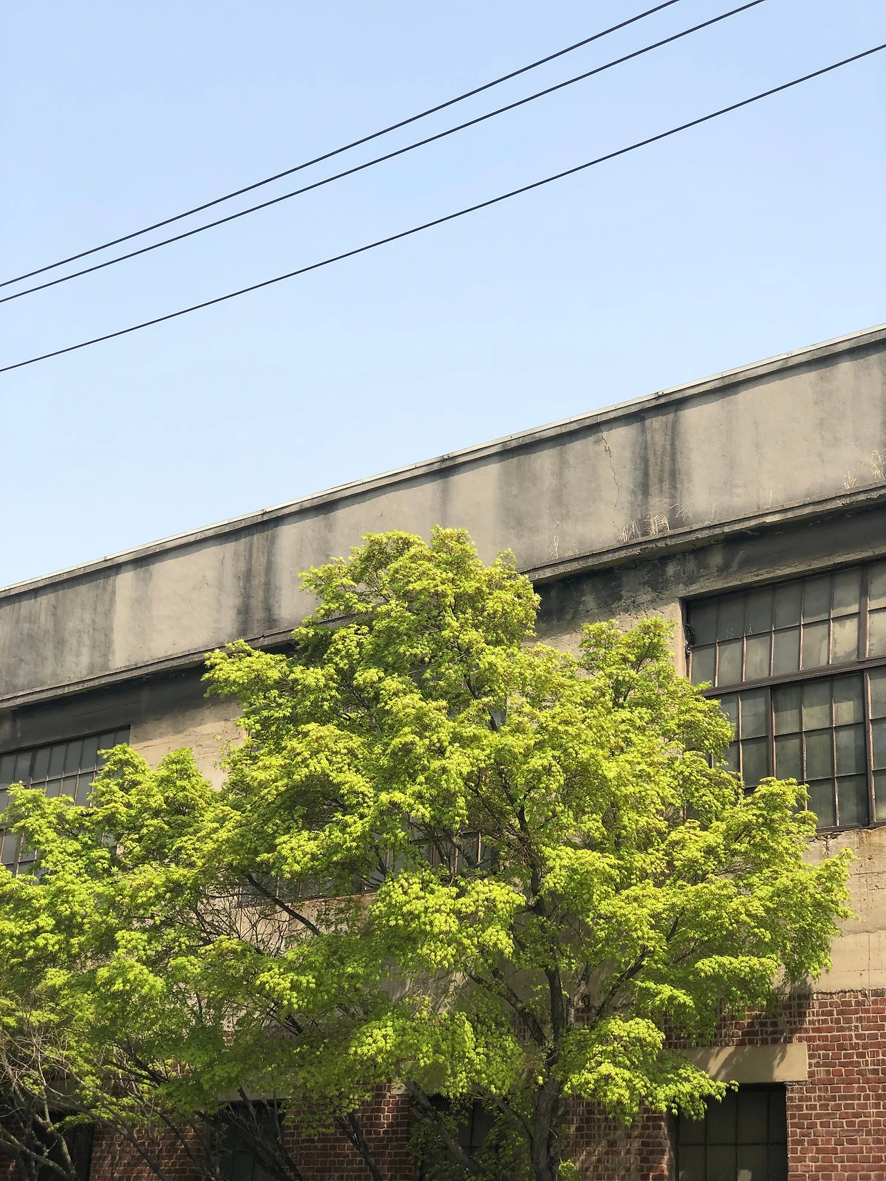 썬캐쳐를 만들 때 어떤 도안을 할지 무척이나 고민했던 것과 달리, 오일페인팅으로 그리고 싶은 이미지를 고르는 건 쉬웠다. 폐건물에 피어난 봄. 작년 4월 로케이션 헌팅을 다니다가 정말 기이한 공간에 간 적이 있다. 외국어로 덕지덕지 낙서가 쓰여 있는 폐차 수천 대가 잔뜩 들어선 폐건물. 조금 오버해서, 당장 총소리가 들려도 어색하지 않을 만큼 무서운 공간이었다. 다행히 볕이 좋은 맑은 날이었고 건물을 나오니 긴장이 금방 풀렸다. 그리고 고개를 돌렸는데 한쪽에 이파리가 푸릇푸릇 돗아난 나무 한 그루가 따뜻한 볕을 받고 있었다. 이렇게 낡고 무서운 건물에 저렇게 예쁜 생명이 빛을 내고 있다는 것이 신기하게 느껴져서 사진을 찍었는데, 그 색감이 참 마음에 들었다. 그걸 그리고 싶었다.