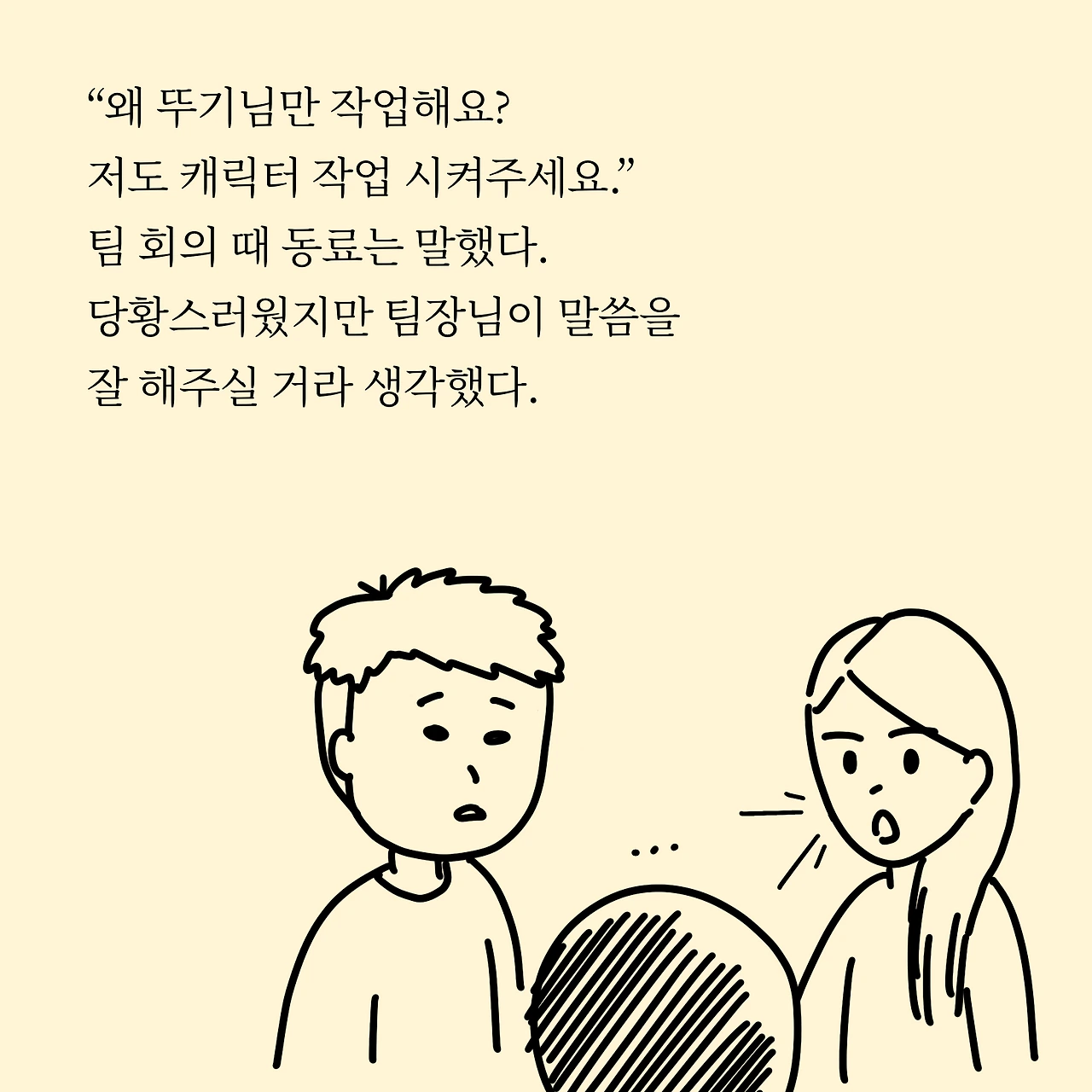 "왜 뚜기님만 작업해요? 저도 캐릭터 직업 시켜주세요." 팀 회의 때 동료는 말했다. 당황스러웠지만 팀장님이 잘 말씀해주실 거라 믿었다.