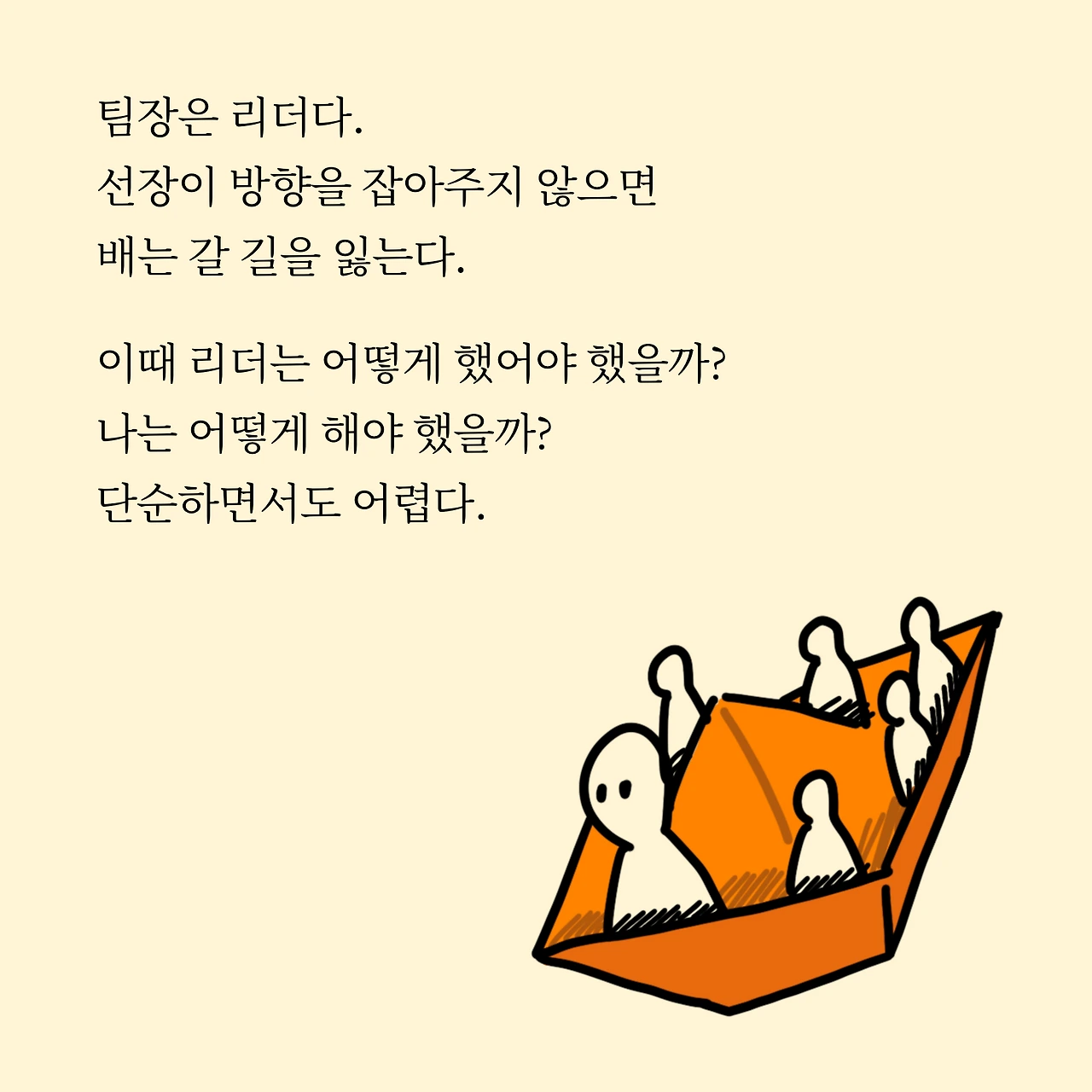 팀장은 리더다. 선장이 방향을 잡아주지 않으면 배는 갈 길을 잃는다. 이때 리더는 어떻게 해야 했을까?