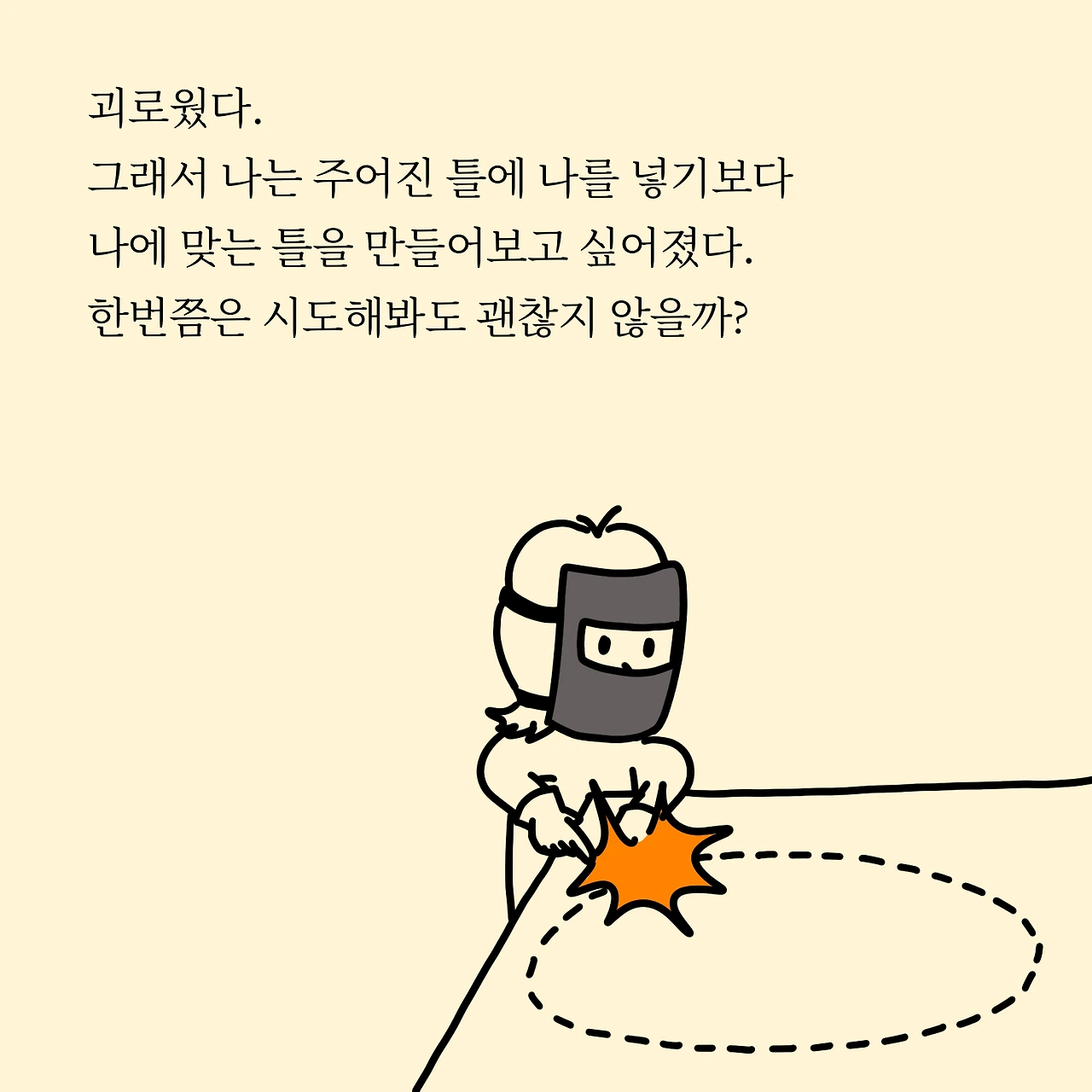 그래서 나는 주어진 틀에 나를 넣기보다 나에 맞는 틀을 만들어보고 싶어 졌다. 한 번쯤은 시도해봐도 되지 않을까?
