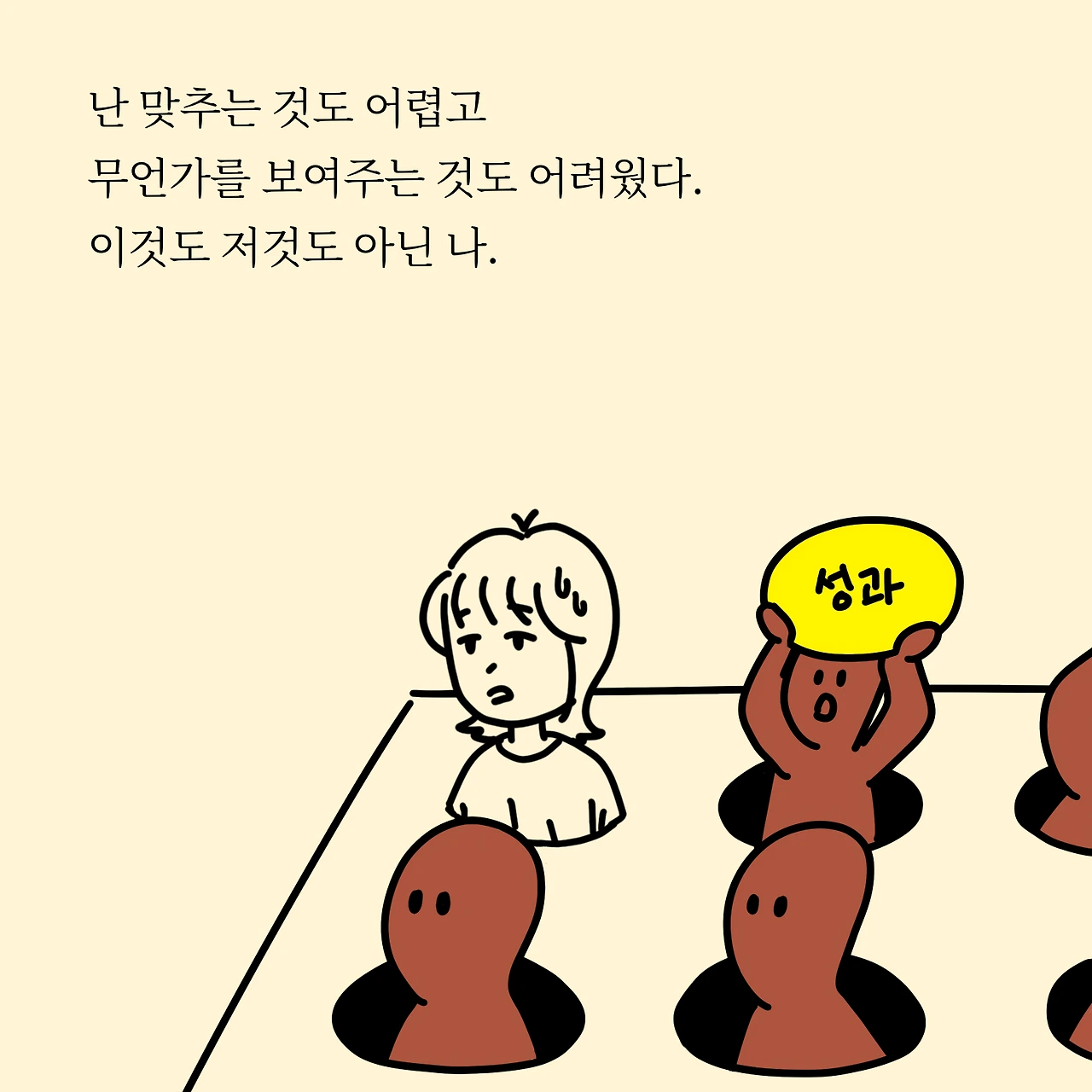 난 맞추는 것도 어렵고 무언가를 보여주는 것도 어려웠다. 이것도 저것도 아닌 나다.