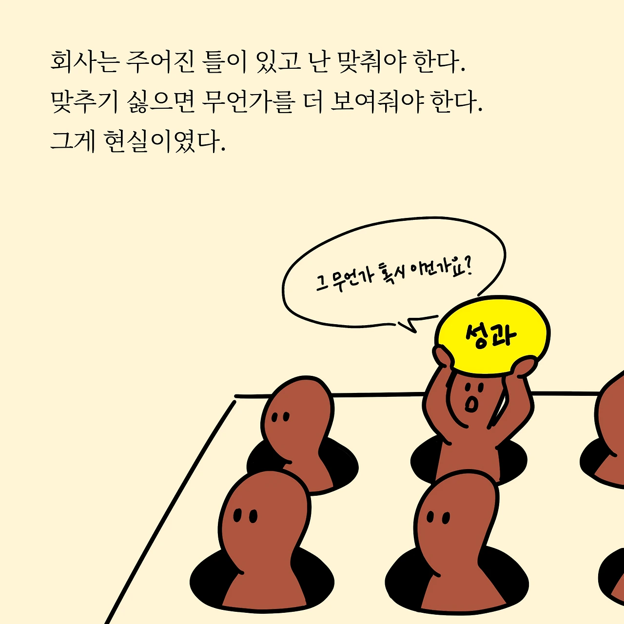 회사는 주어진 틀이 있고 난 맞춰야 한다. 맞추기 싫으면 무언가를 더 보여줘야 한다.