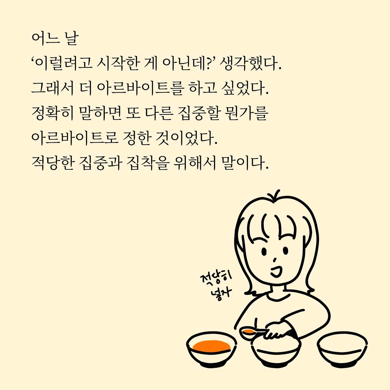 그런데 계속 이렇게 지내다가는 집착만 늘어갈 거 같았습니다. 그래서 아르바이트를 더 하고 싶었습니다. 집중과 집착을 분산시키는 거죠. 스스로 통제하기 어렵다면 할 수 있게끔 환경을 만드는 것도 방법이라 생각합니다.