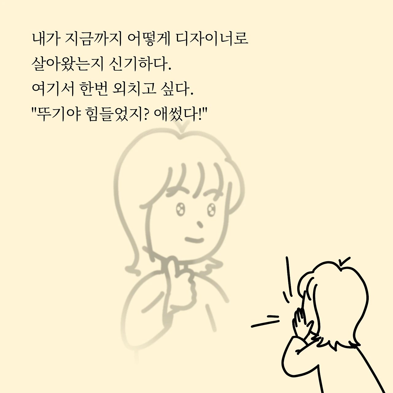 지금은 디자이너가 아닌 사무보조로 일하지만 매일매일 정시 퇴근에 이렇게 글 쓸 여유도 있고 행복합니다. 당분간은 이렇게 일하면서 길을 만들어보려 합니다.