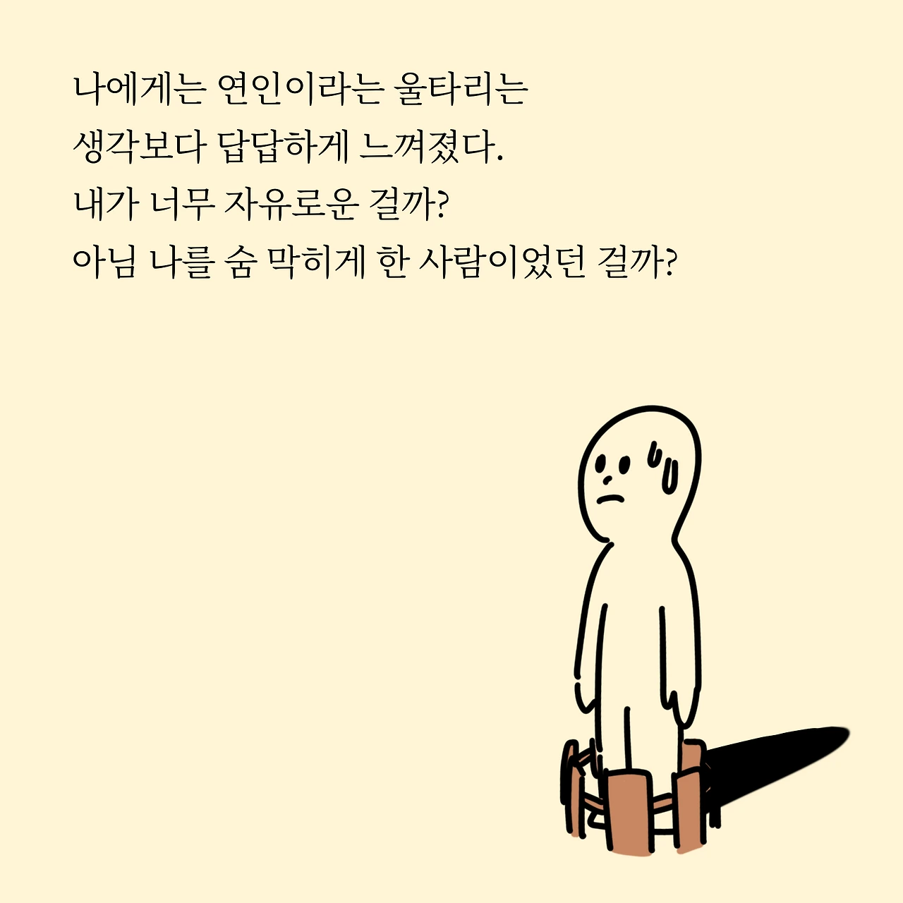 저는 여러 연애를 하면서 직장 생활했던 거처럼 '내가 너무 자유로운 영혼인가?' 생각했습니다. 직장 생활하면서 저 자신에게 의문을 항상 품었는데 연애마저 그랬습니다. 스트레스를 아이스 아메리카노 한잔에 의지하며 짧으면 8시간, 길게는 15시간을 근무하고 퇴근하면 '나'만의 시간이 꼭 필요했습니다. 그게 나름의 휴식이었어요. 그런데 퇴근하고 나서 또 다른 일이 있었습니다. 연애라는 일이요. 퇴근길에 통화와 카톡, 집에 도착해서 통화와 카톡, 잠깐의 뉴스 볼 때마저 카톡.. 피곤해하는 저를 보며 '어떻게 나랑 대화하는걸 피곤해 할 수 있어?'라는 말을 들었습니다. 제 입장에서는 떼쓰는 아이처럼 느껴졌어요. 이때를 생각하면 직장에서도 스트레스, 퇴근해서도 스트레스라 더 괴로웠네요.