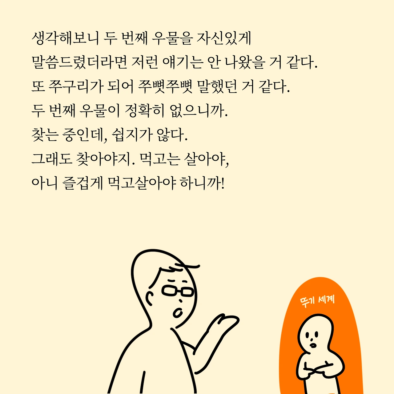 그중 가장 기억에 남는 말은 "한 우물을 파야지, 그건 취미로 하면 되잖아. 지금까지 쌓았던 경력 놔두고 뭐 하는 거야."인데요. 기억에 남는 이유는 부정을 할 수가 없더라고요. 어느 정도 맞는 말씀이니까요. 그리고 저 스스로도 플랜 B가 정확히 없기도 했습니다.
