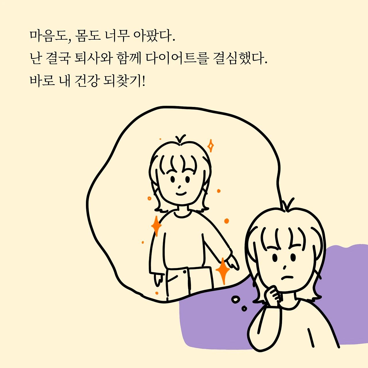 마음도, 몸도 너무 아팠다. 난 결국 퇴사와 함께 다이어트를 결심했다. 바로 내 건강 되찾기!
