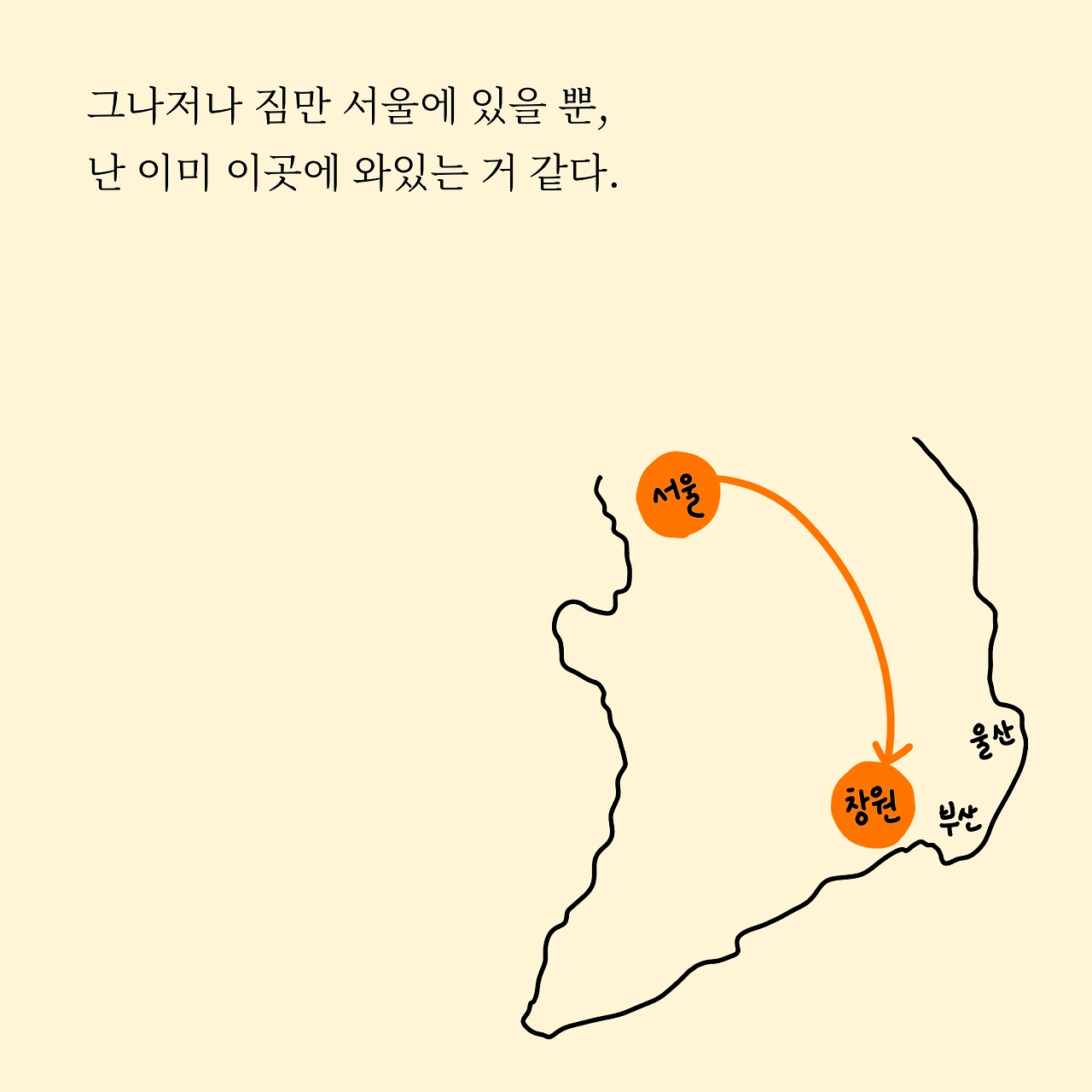 저는 이미 창원에 와 있는 거 같네요. 이미 창원 살이는 시작되었습니다.. 하하.. 결정은 자연스럽게 했고, 창원에 있으려면 사람이 지낼 수 있는 집이 필요한데요. 집 구하기가 참 골치더군요.. 가족 품에 있을 때와는 다르게 스스로 집을 보러 다닌 건 처음이었는데 자신만만하게 생각하던 대출도 계획처럼 안되고, 집은 집대로 마음에 안 들고 서러웠습니다. 이 이야기도 툰으로 제작해서 보여드리겠습니다.
