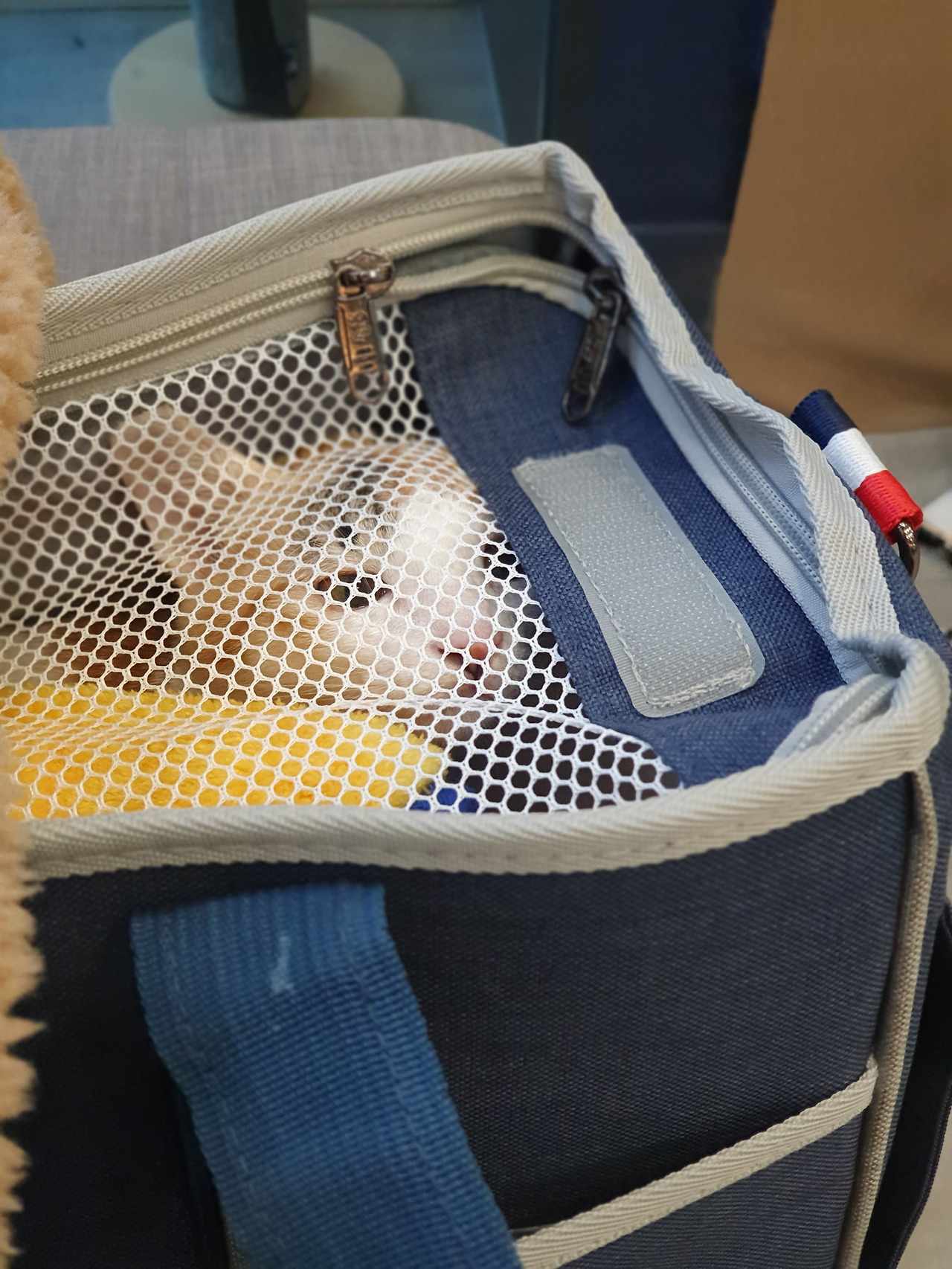 언니가 가방 문을 열어주자마자 나는 후다닥 뛰어나가서 나의 은신처에 숨어있었어. 그리고 그때부터 지금까지 언니는 날 달래주는 중이야.