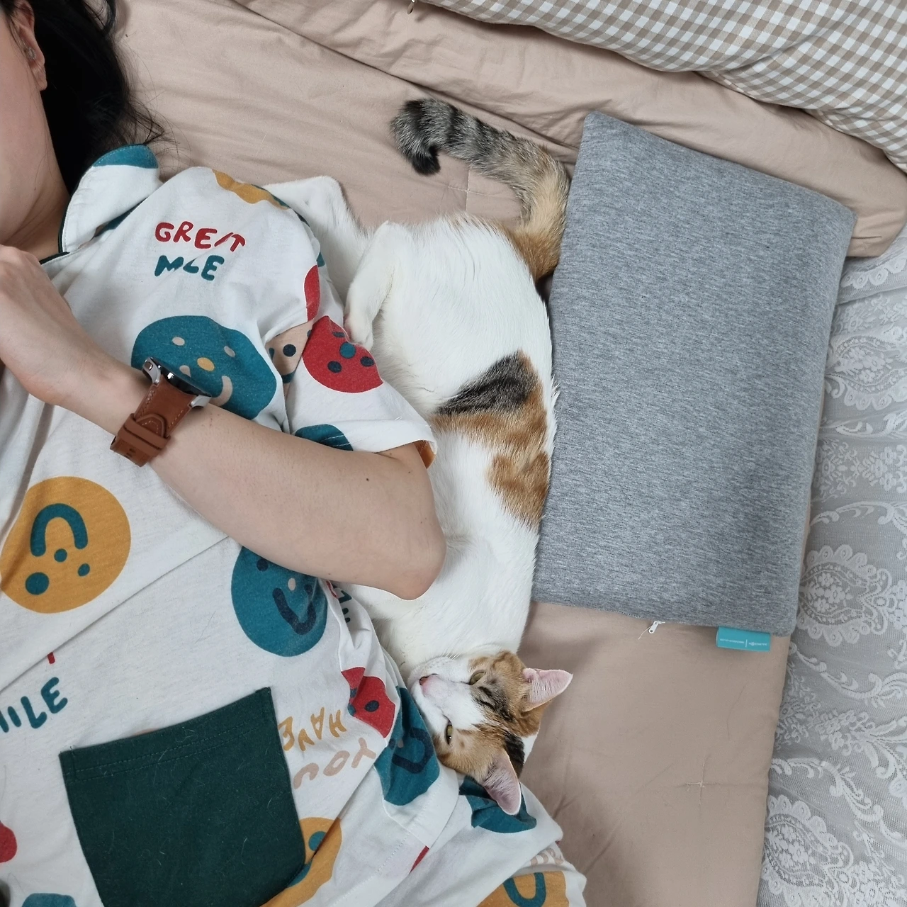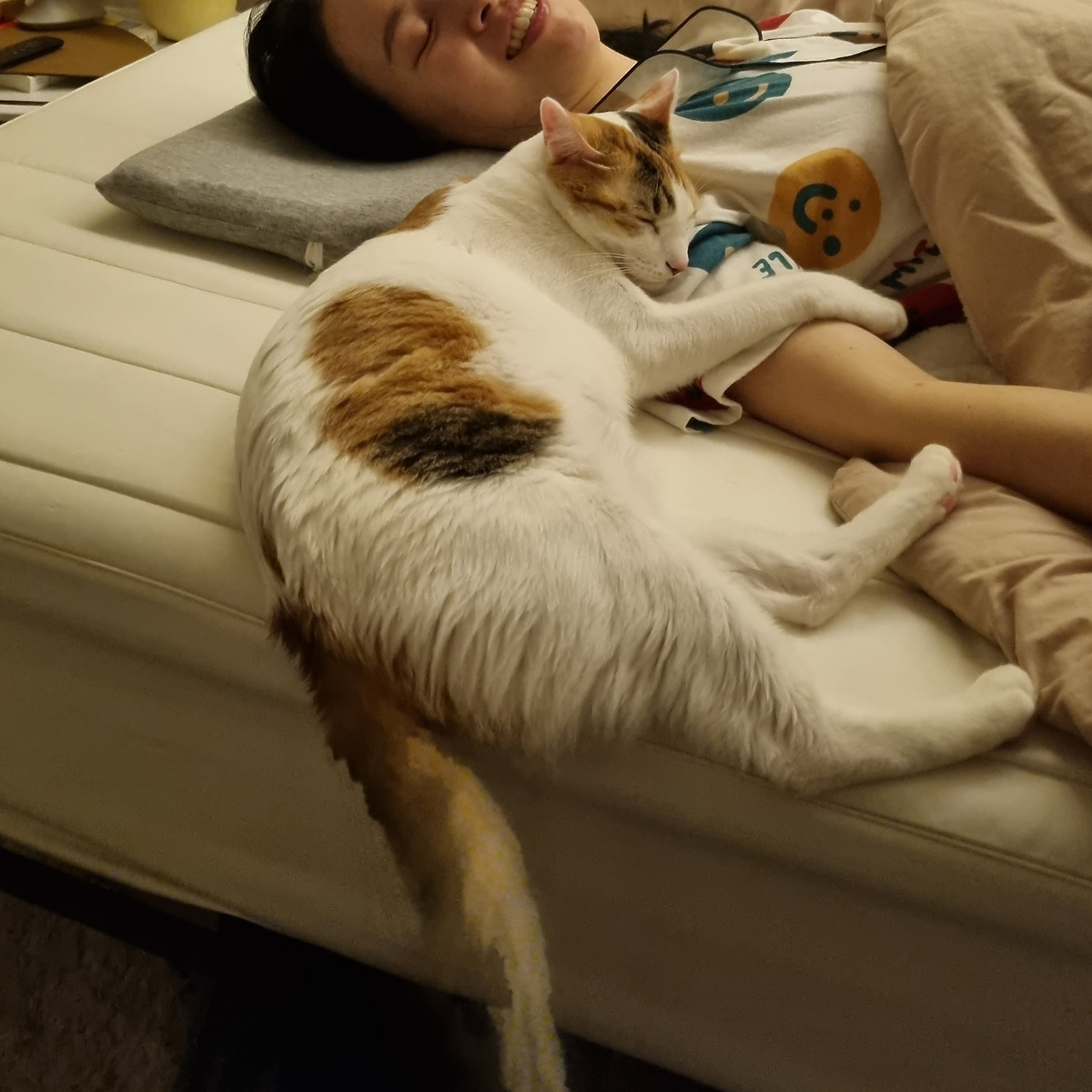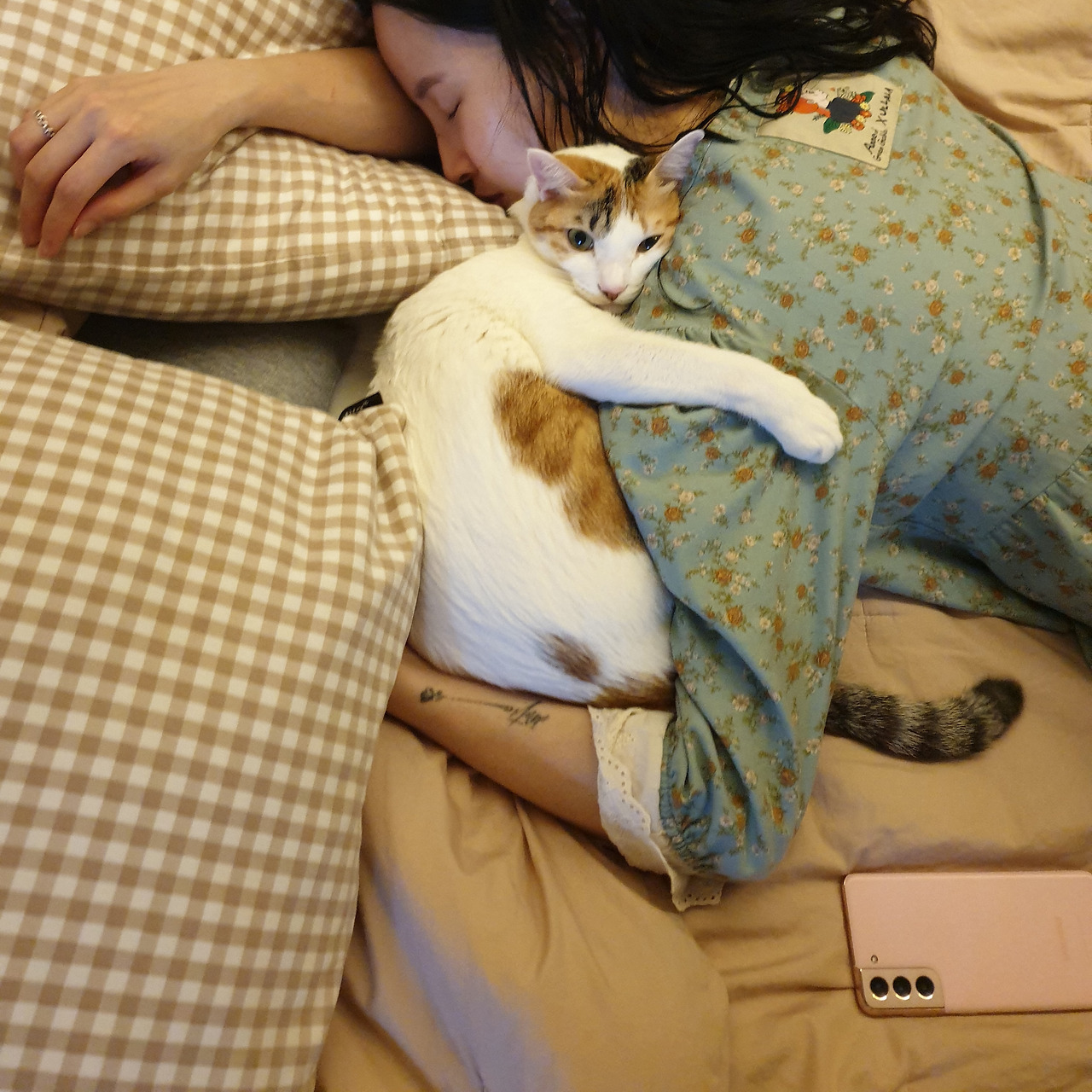 심지어 나를 꽉 끌어안고 다시 잠드는 집사 녀석.