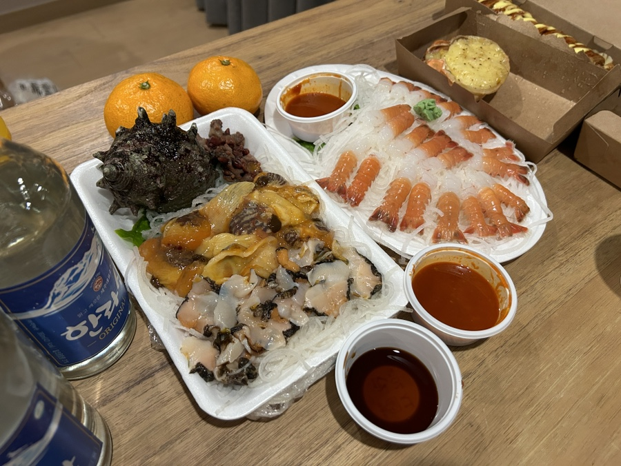 제주에 머물면서 가장 기억나는 음식은 단연 한라산에서 먹은 진라면과 숙소에서 먹은 멍게와 해삼 친구들.