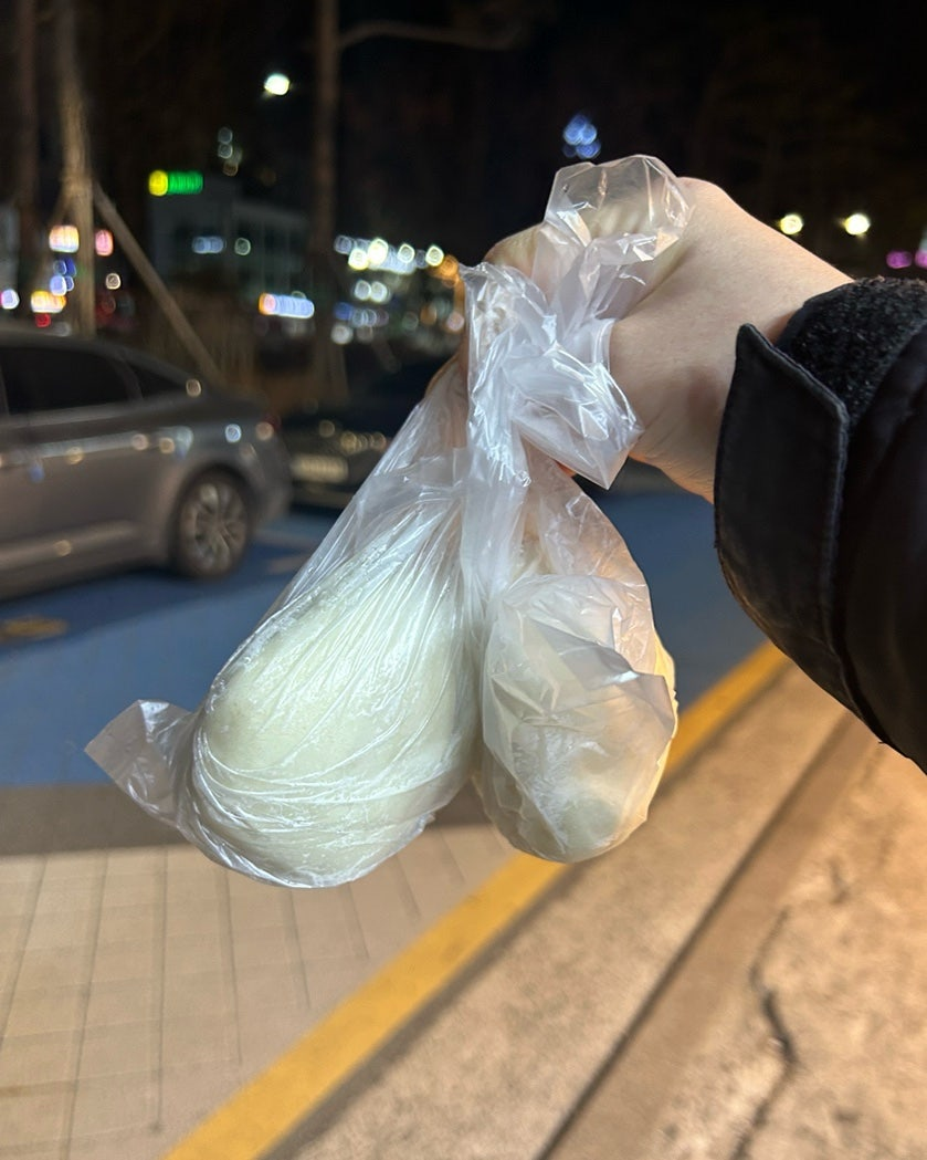길 가다 HS가 사준 찐빵이다. 찜기에서 바로 나온 찐빵이라지만 이 혹한기에서는 버틸 자가 없다. 금세 다 식은 찐빵 아구작- 씹어 먹으면서 좋다고 히히덕댔다. 이것이 햄복이다.