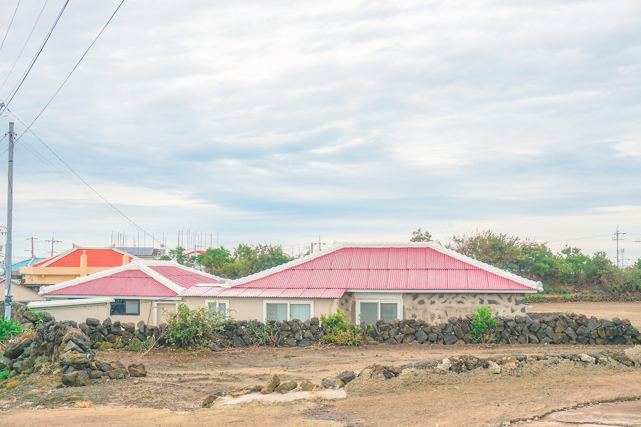 그 지붕들을 보니 비로소 완전한 행복을 얻은 것 같았다. 나도 모르게 입꼬리가 올라갔다. 끌고 있는 캐리어는 흠뻑 비를 맞고 또 맞았지만 그럼에도 좋았던 숙소를 찾아가는 길이었다. 제주도를 사랑하는 가장 큰 이유가 그 지붕이라는 것을 직감했던 순간이었다.
