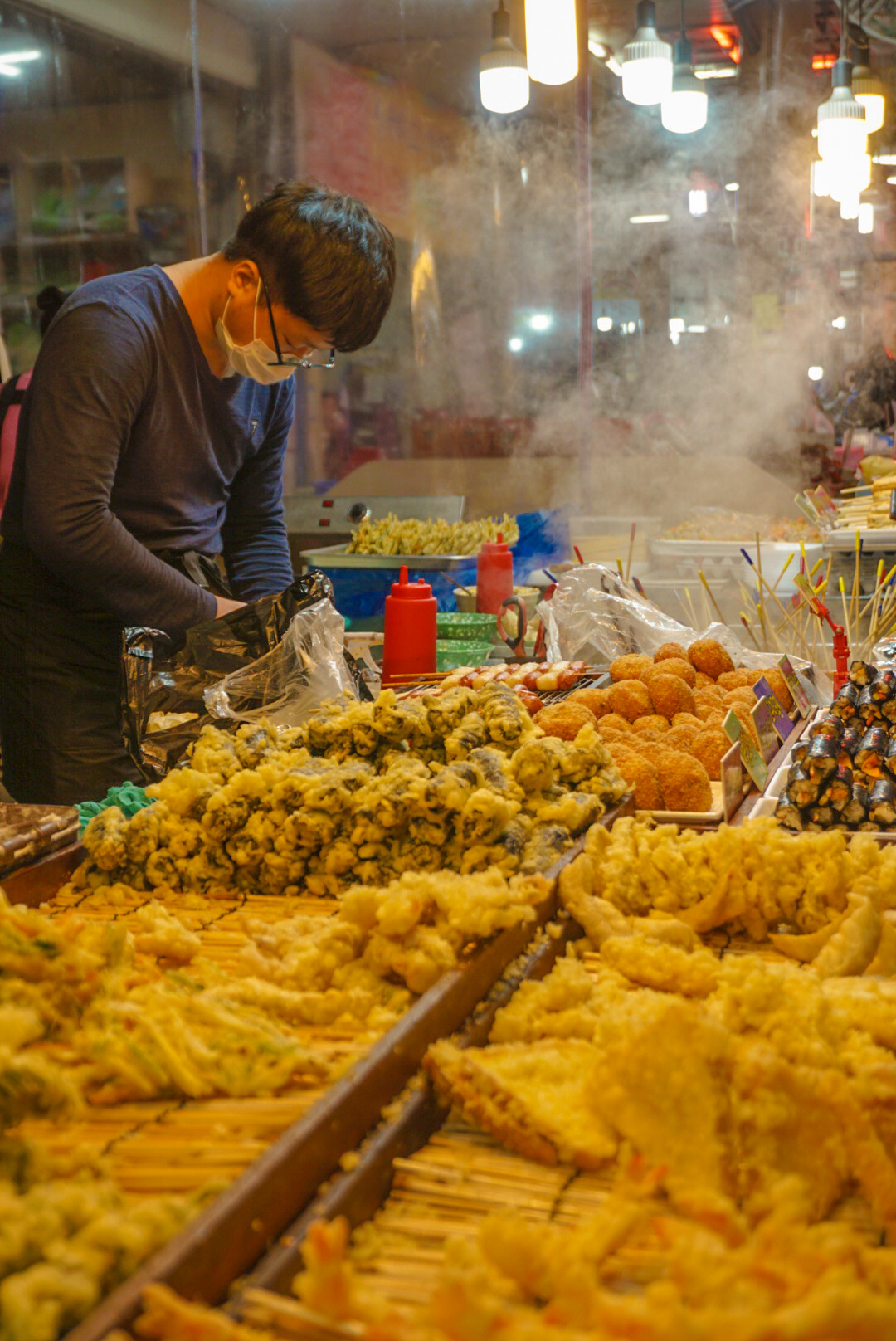 어느 시장이나 그렇듯 가장 인기가 많은 곳은 '먹거리'. 동부시장의 중심으로 보이는 먹자골목은 바다를 끼고 있는 도시인만큼 생선살 100% 어묵과 크게 한 접시를 먹어도 단돈 만원인 모둠회, 게살 크로켓 등을 판매하고 있음과 동시에 보기만 해도 속이 넉넉해지는 것 같은 크기의 김밥이나 빨간 맛 떡볶이, 꽈배기, 팥 도넛 등 기본 시장 먹거리를 판매하고 있었다. 시장 규모가 작다고 해서 먹거리가 적어지는 것은 아니었다. 현금을 두둑이 준비해야 할 뿐.