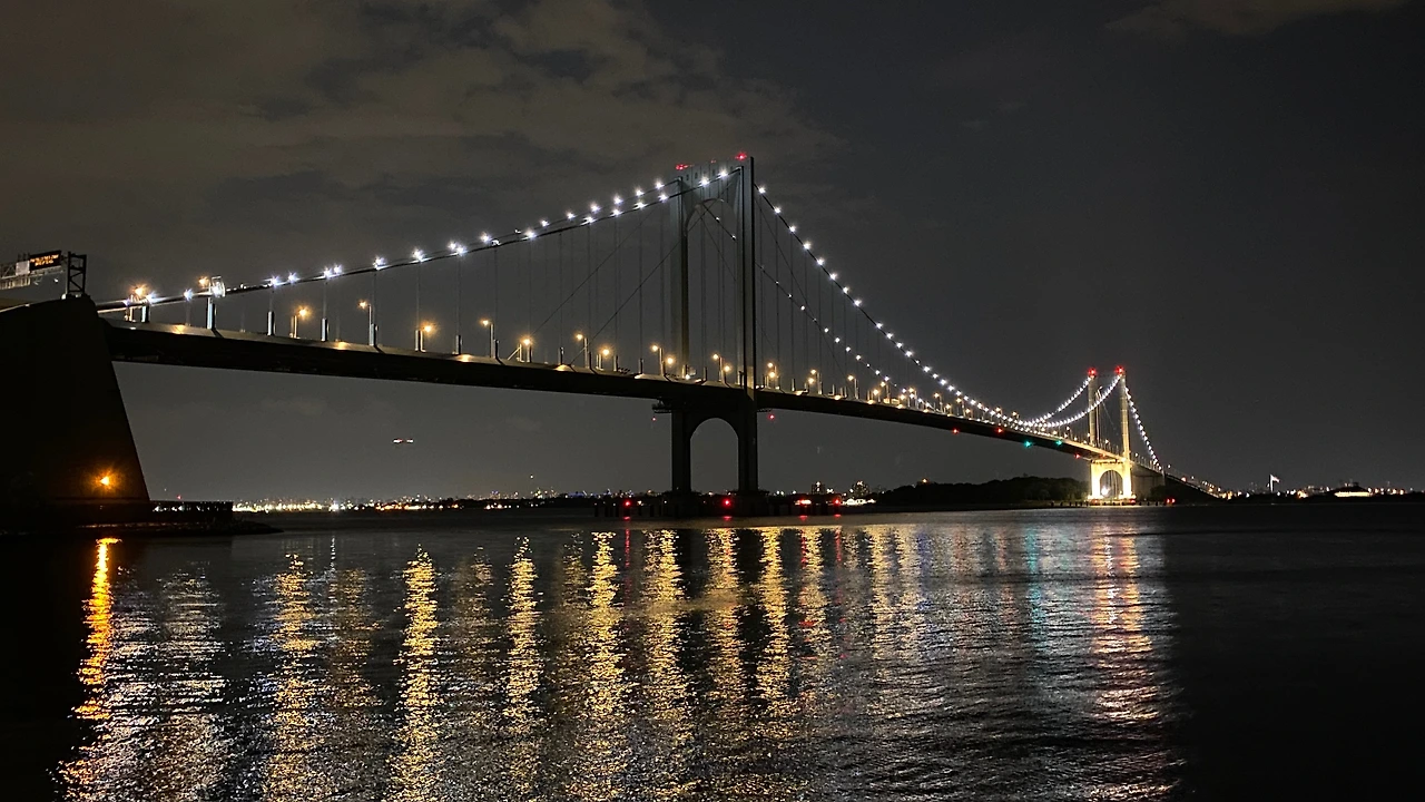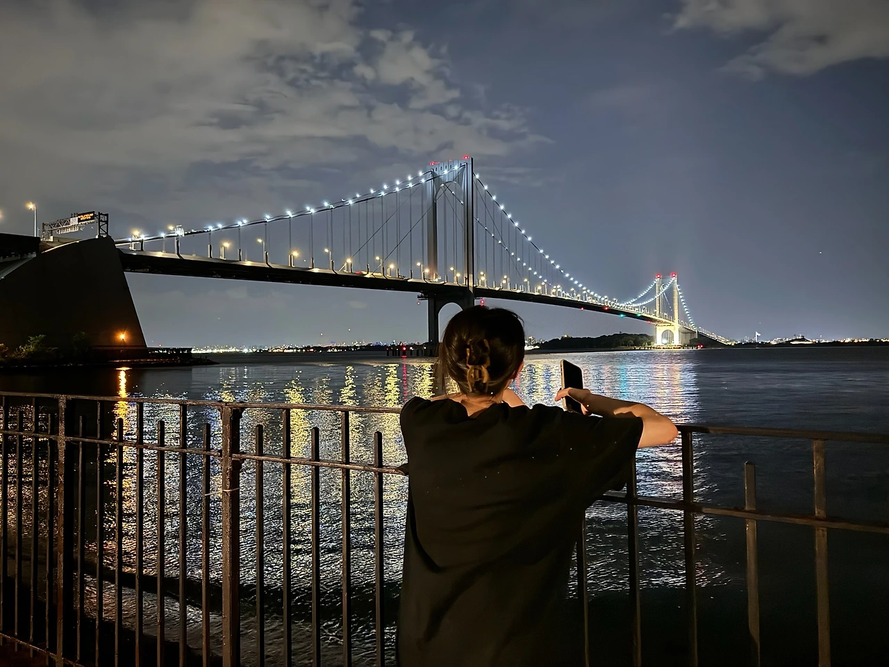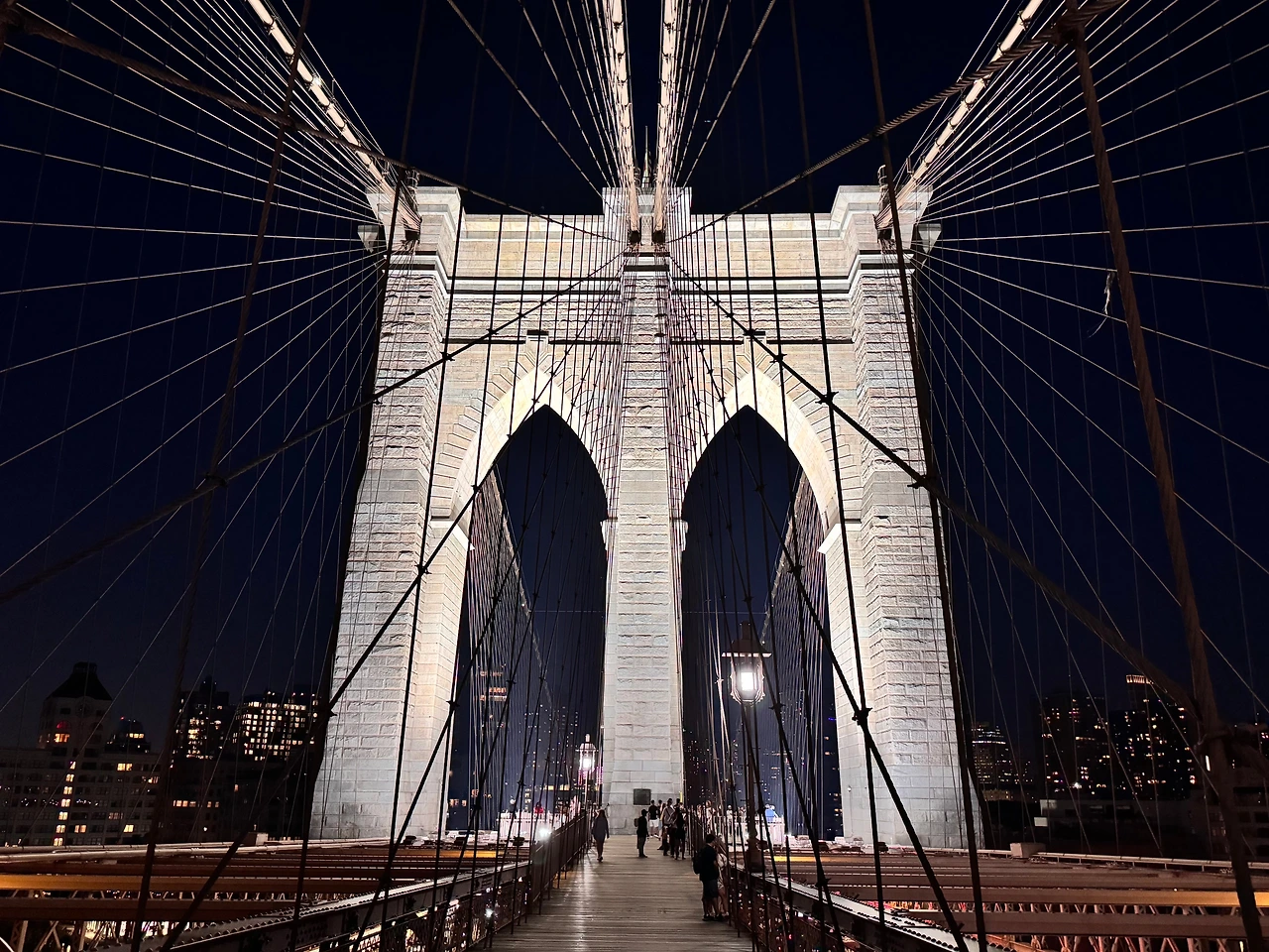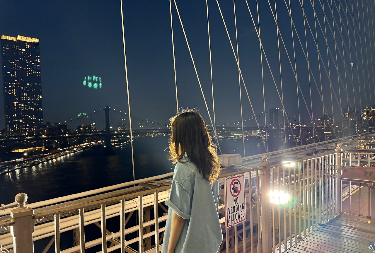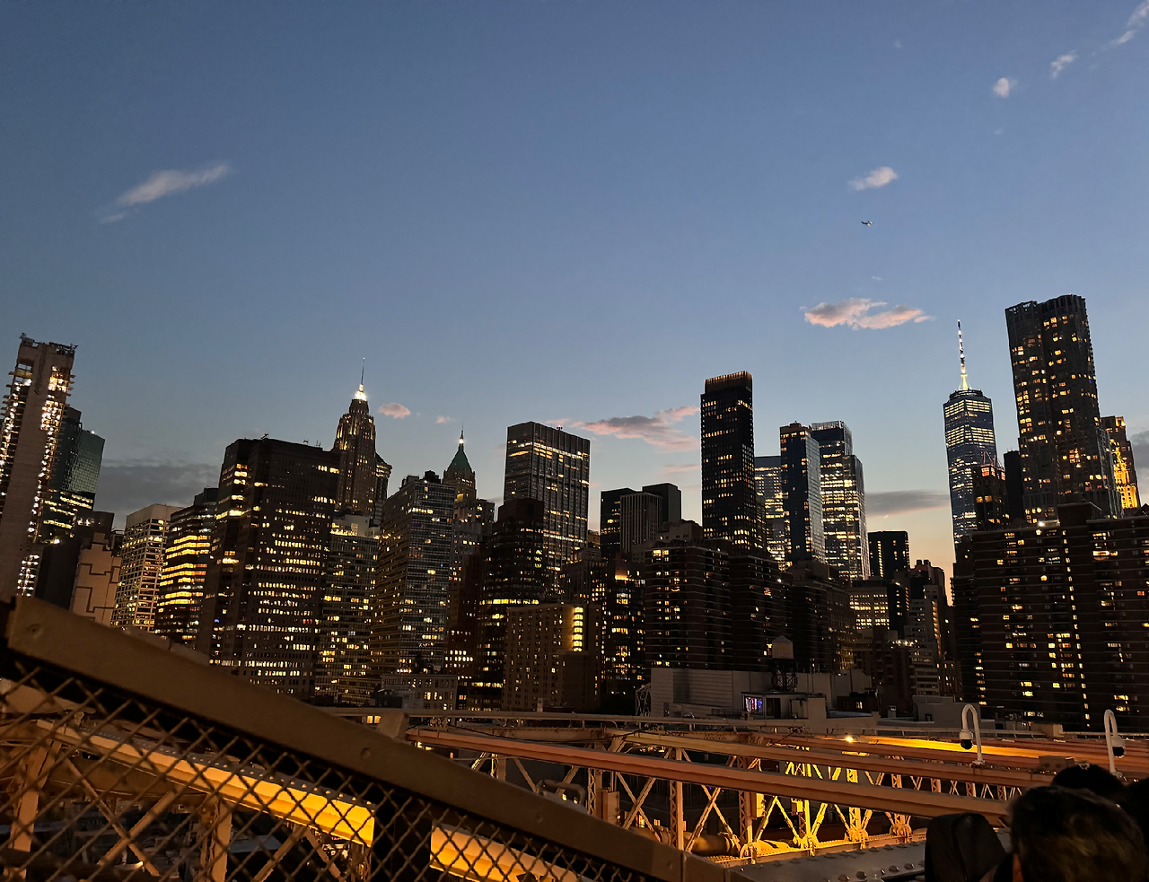 브루쿨린 다리를 건너던 중 중간에 찍은 사진에는 불 켜진 뉴욕의 건물들이 빼곡히 세워져 있는 걸 보게 됐다. 엠파이어 스테이트 빌딩도 보였다.