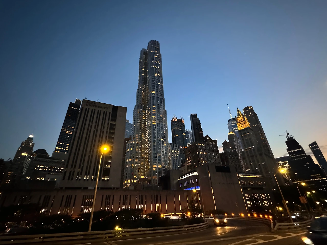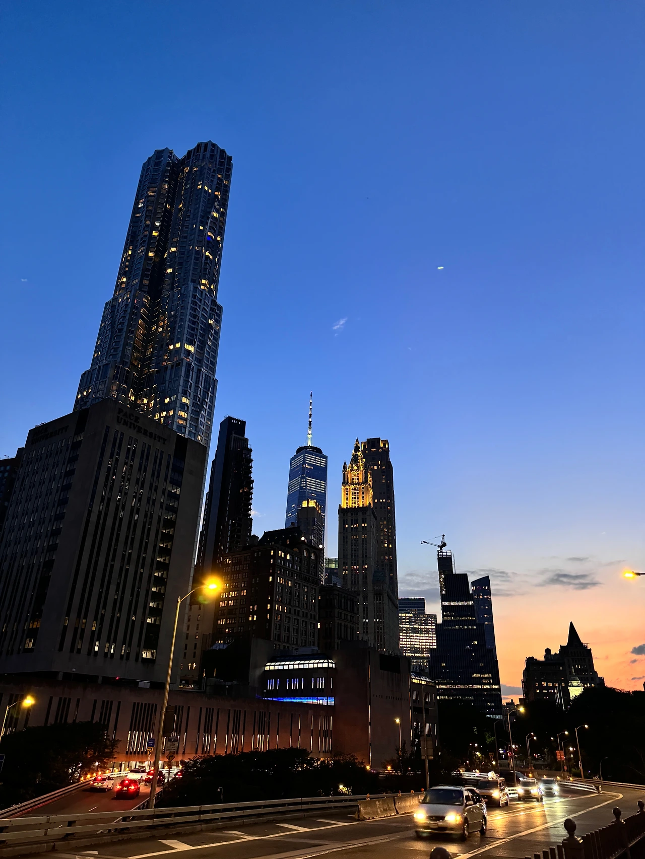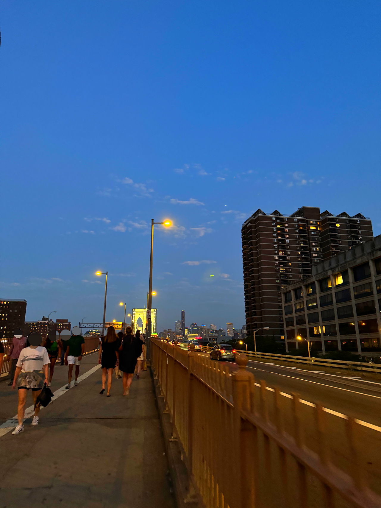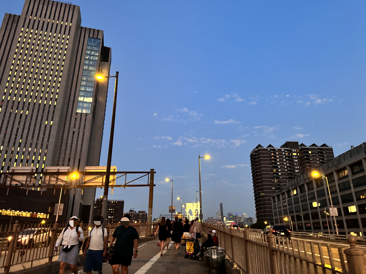 브루쿨린 다리에 도착하기 전에 걸었던 길도 멋있었다. 점점 저녁에서 밤으로 바뀌는 시간대였어서 그런지 사진을 어떻게 찍어도 예쁘게 나왔다. 빛나는 가로등과 함께 연파랑색의 하늘과 은은한 건물들의 불빛들은 내 기분을 훨씬 설레게 만들어 주었다.