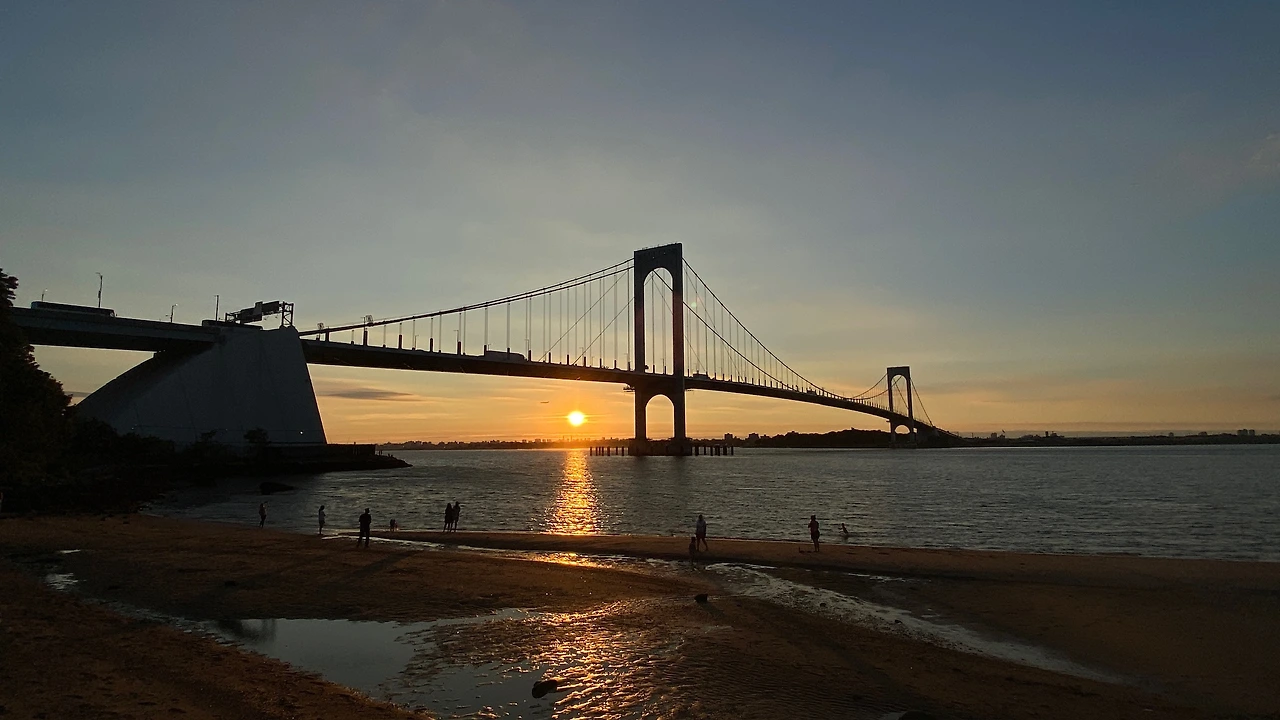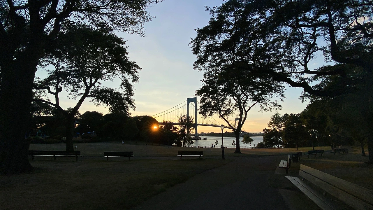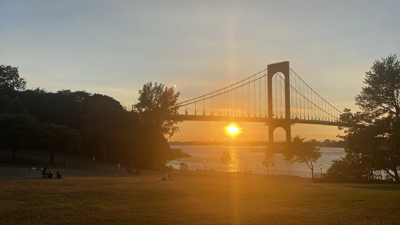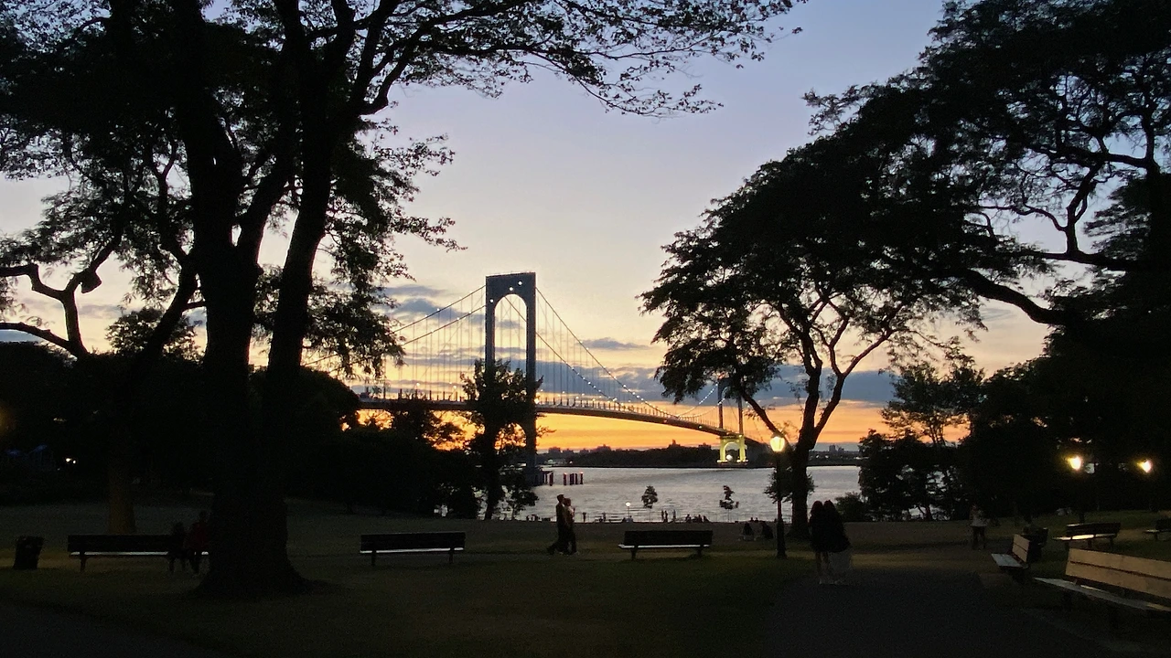 앉아서 노을을 구경하는 사람들의 모습이 공원이 이름은 Francis Lewis Park이다.
