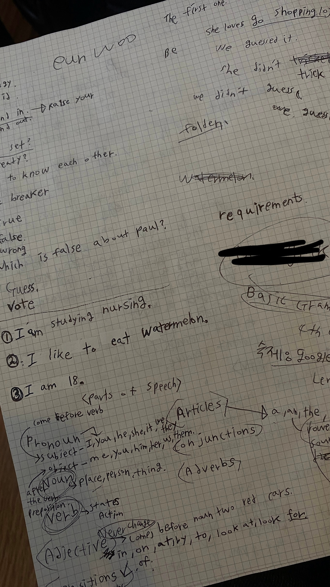 speaking은 grammar와 같이 진행을 했는데 수일치부터 해서 과거형, 현재형, 현재시제, 과거시제, 단수형, 복수형 등을 배웠던 거 같다.