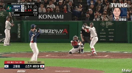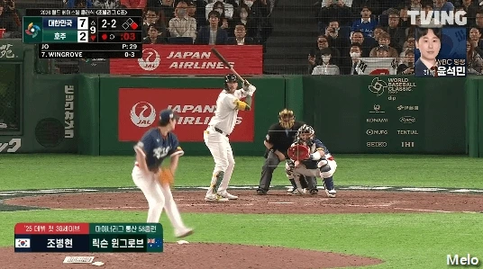그러나 일본의 화력 역시 무시무시했다. 1회말 오타니 쇼헤이를 볼넷으로 출루시키고, 곤도 켄스케를 아웃시켰지만 스즈키 세이야에게 투런을 맞으며 2실점을 기록했다. 3회말에는 고영표가 연속 삼진을 잡아내며 승기를 이어가나 했지만, 오타니와 스즈키의 솔로포로 역전을 허용했다. 곧이어 조병현이 마운드에 새로 올라왔지만, 요시다 마사타카의 솔로포가 터지며 단숨에 5대 3으로 역전당하게 된다.