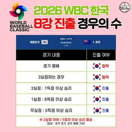 2026년 3월 11일, 됴쿄돔에서 또 한번의 기적이 탄생했다. 2026년 WBC (World Baseball Classic)에 참가한 대한민국 대표팀이 호주를 상대로 승리하며, 극악의 확률을 뚫고 2라운드에 진출하는 기적을 만들어 내었다. 이는 지난 2023년 WBC의 8대 7로 패배한 복수극이도 하며, 2009년 WBC 이후 17년만에 진출한 갚진 승리이기도 하다.