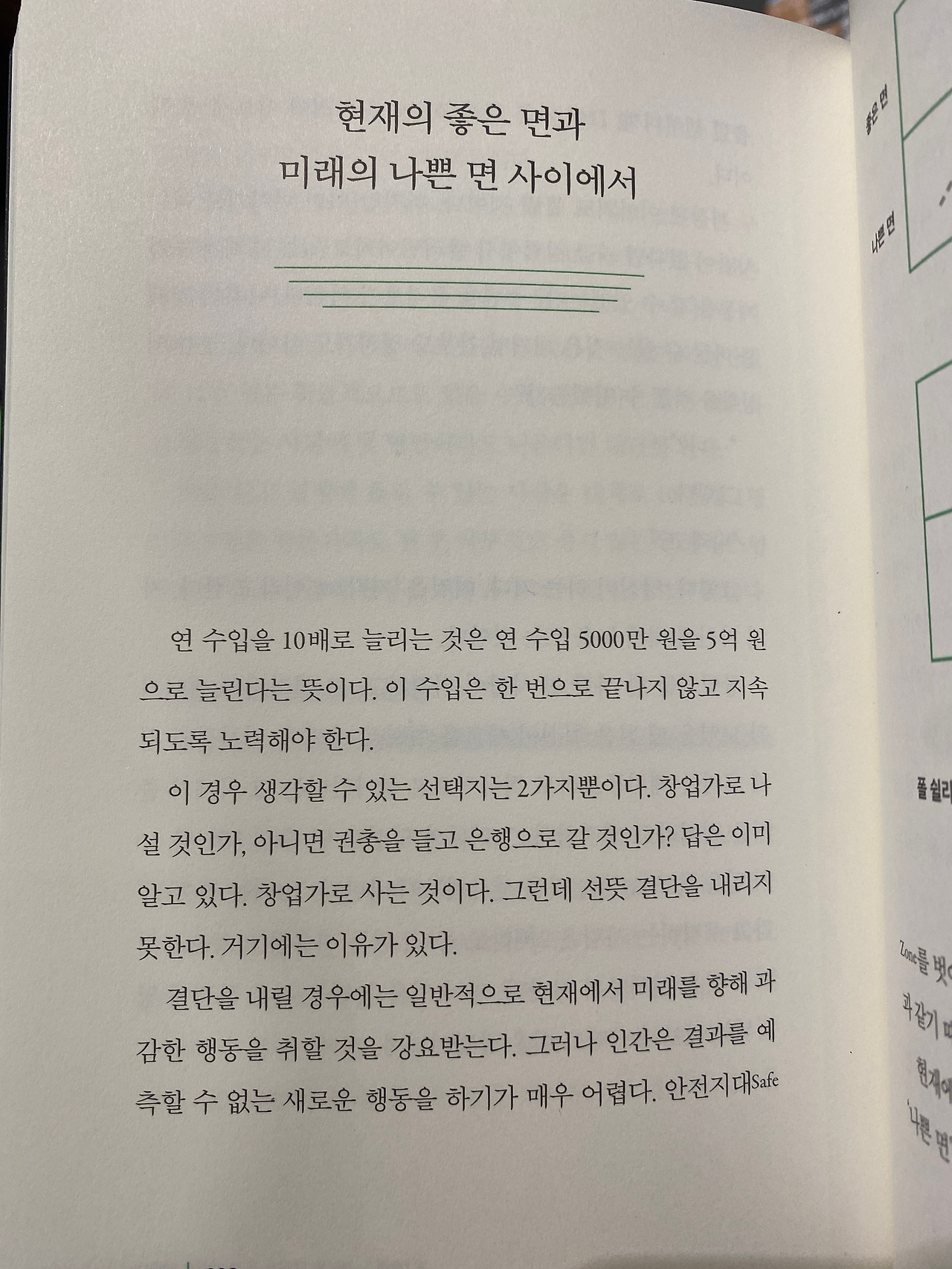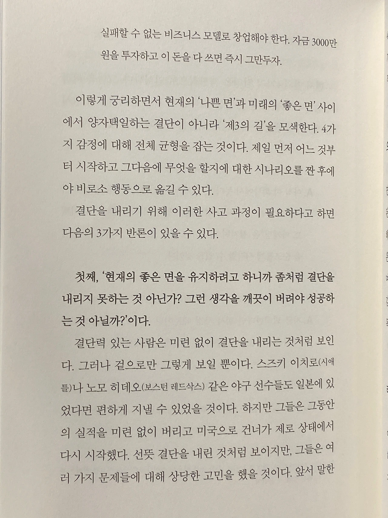 5. 결단을 내릴 때에는 일반적으로 현재에서 미래를 향해 과감한 행동을 취할 것을 강요받는다. 그러나 인간은 예측할 수 없는 새로운 행동응 하기가 매우 어렵다.