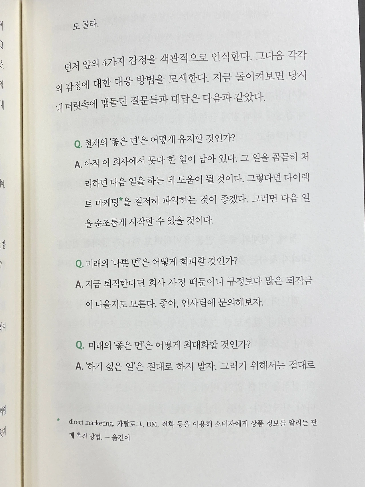 따라서 현재의 좋은점, 나쁜점, 미래의 좋은점, 나쁜점 4가지 감정에 대한 대응 방법을 찾는다.