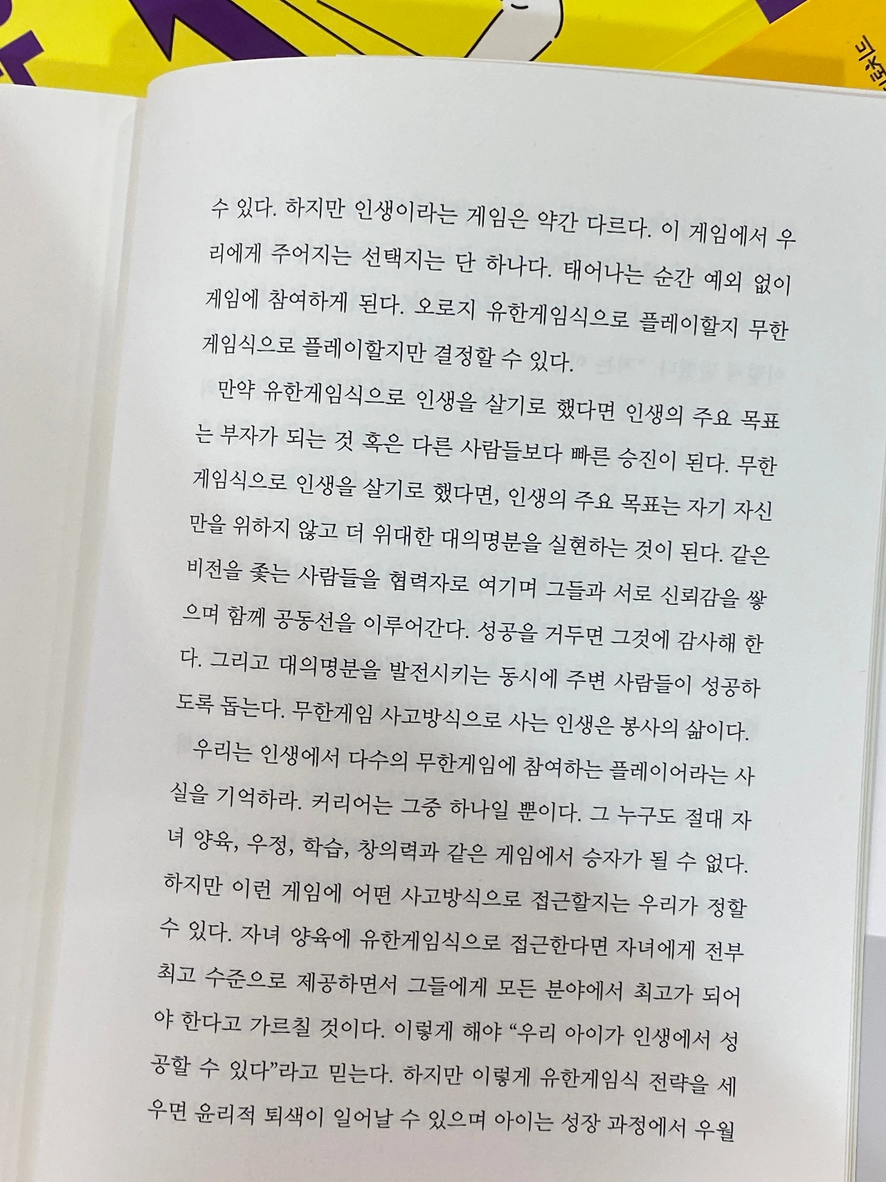 2. 무한게임은 반대로 참가자도 정의되지 않고, 규칙도 불분명한 게임이다. 시험에는 성패가 나뉘지만 교육 그 자체는 승패가 없다. 승진 과정에서는 승자가 나오지만 전체 커리어를 놓고보면 영원한 승자는 없다.