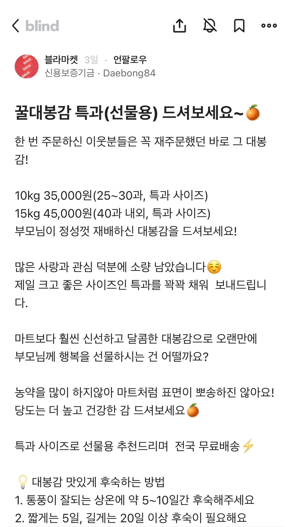 Ex) 저희 부모님이 직접 농사지은 딸기입니다! 올해 당도가 높게 농사가 잘 되었다고 하더라고요.ㅇㅇ만원에 1 상자씩 보내드립니다!