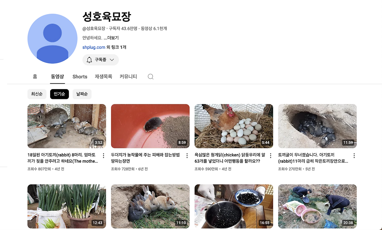 농장에서 편집 없이, 얼굴도 안 나온 채로 30분 내내 혼자 (떠드시는) 이야기하시는 성호육묘장 채널의 자연스러운 영상은 도시의 사람들에게 신선한 콘텐츠가 된다.