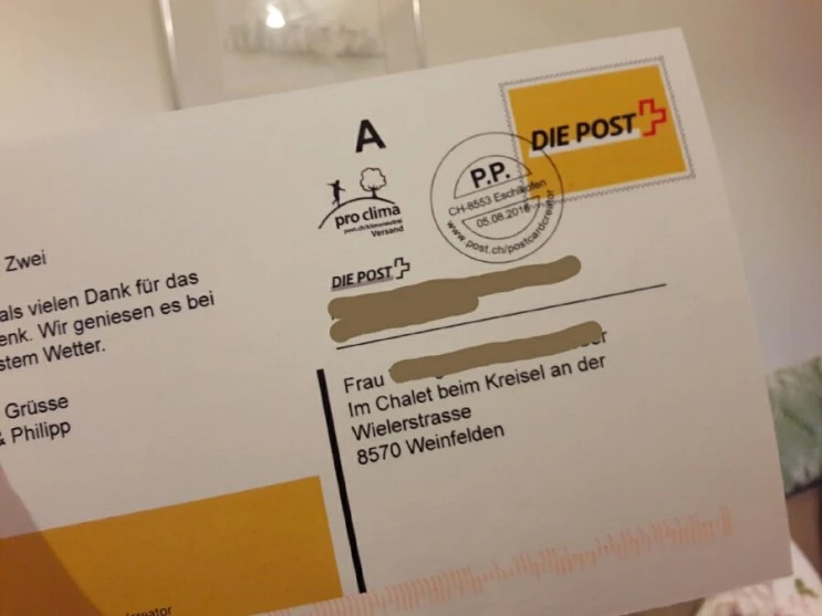 남편이 내가 가져온 우편물 속에서 엽서를 발견하고는 뒷면 주소를 보더니 깔깔대고 웃는다. 정확한 주소를 몰랐던 그들은 주소 대신'뷜러가의 원형 교차로에 있는 전통가옥에'라고 적었고, 그 엽서가 무사히 도착하기까지 한 것이다.