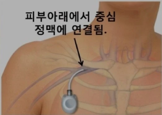 정맥을 통해 심장 가까운 곳에 위치한 중심 정맥까지 삽입하는 관으로 이를 통해 약물을 주입한다.