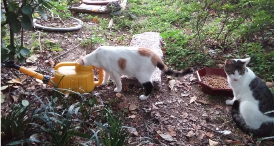 목이 마른지 연신 들이키는 어느 냥이와 뒤를 봐주는 다른 냥이