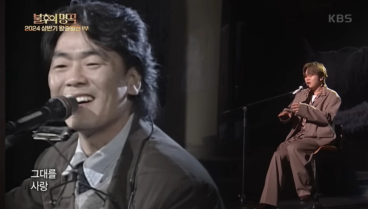 그날 무대에서 김기태는 의자에 걸터앉아, 힘을 빼고 말하듯 노래했다. 간주 중의 하모니카 연주는 김광석에게 바치는 오마주처럼 울렸다. 그러다 후반부, 갑자기 스크린에 김광석의 영상이 떠오르며 두 사람이 한 무대에서 함께 노래하는 듯한 순간—관객의 시간은 멈췄다.