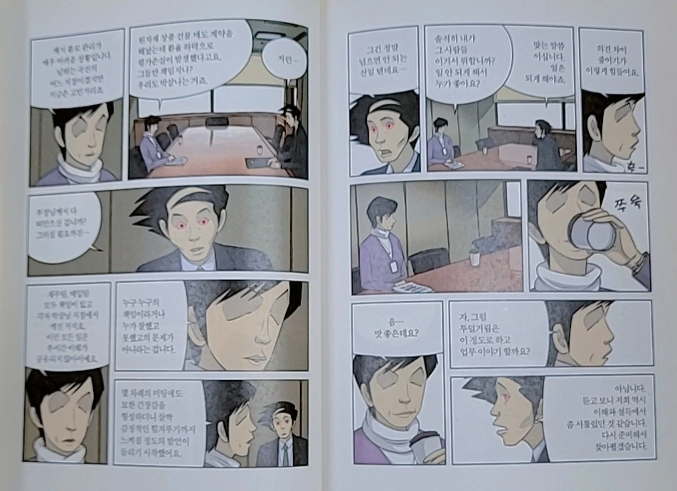 오 차장 : 그냥 가만히 들어주기만 했지. 재무팀이 어디 하소연할 데가 있는 팀인가. 스스로 고민 토로하고 질문하고 답하더니 서류 다시 검토하고선 진행하자고 하더라니까
